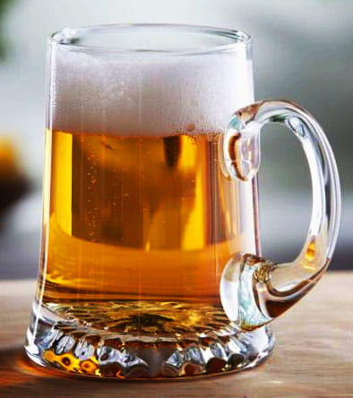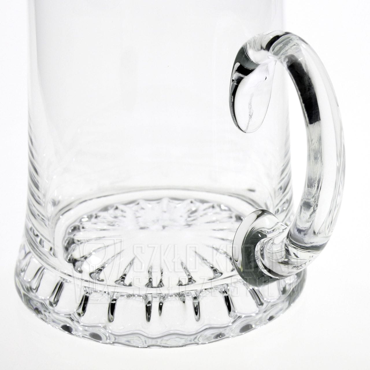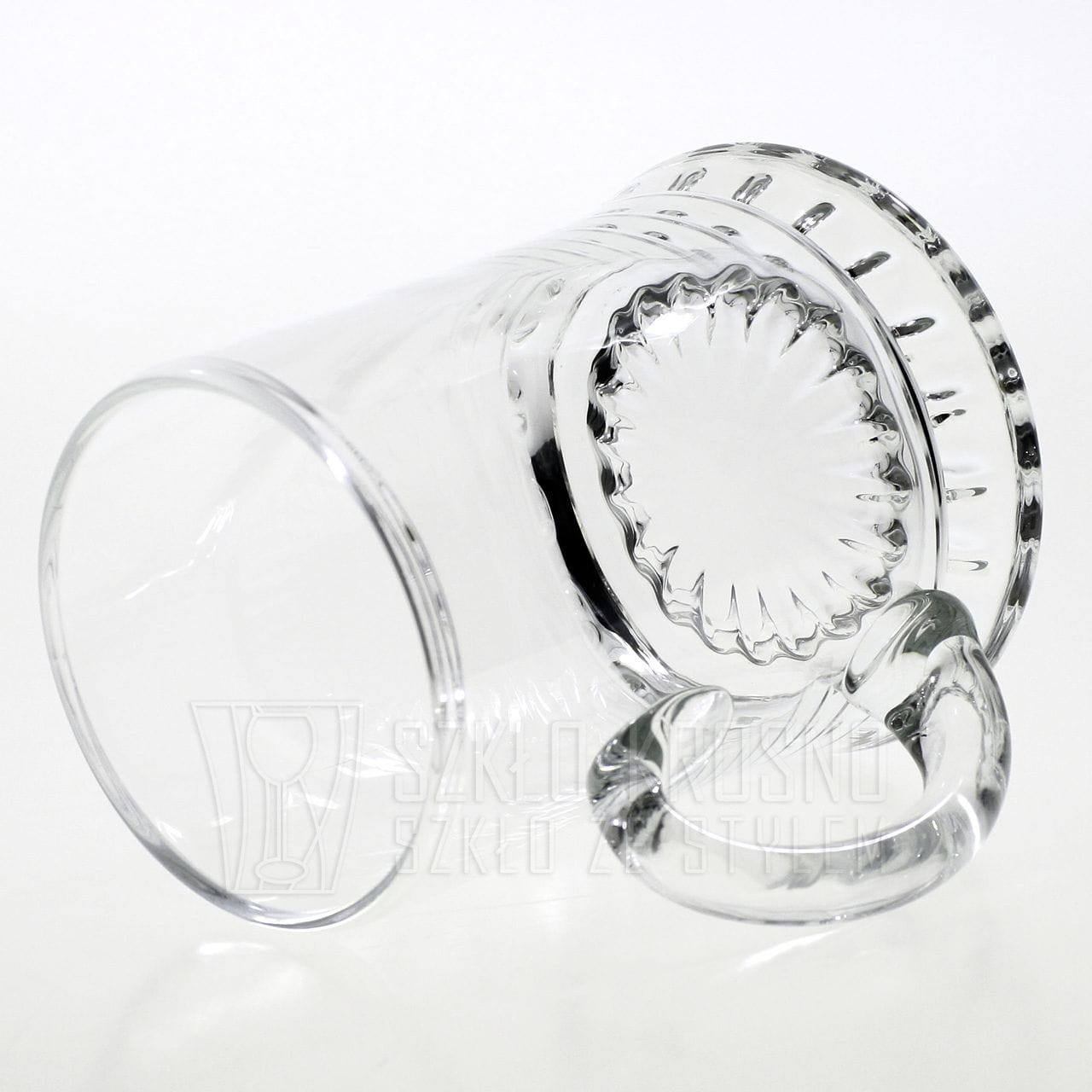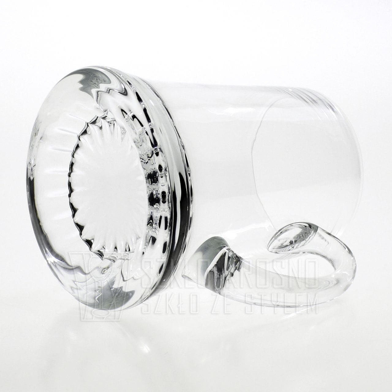 Duży szklany ręcznie formowany kufel o pojemności 1L z wygodną rączką.