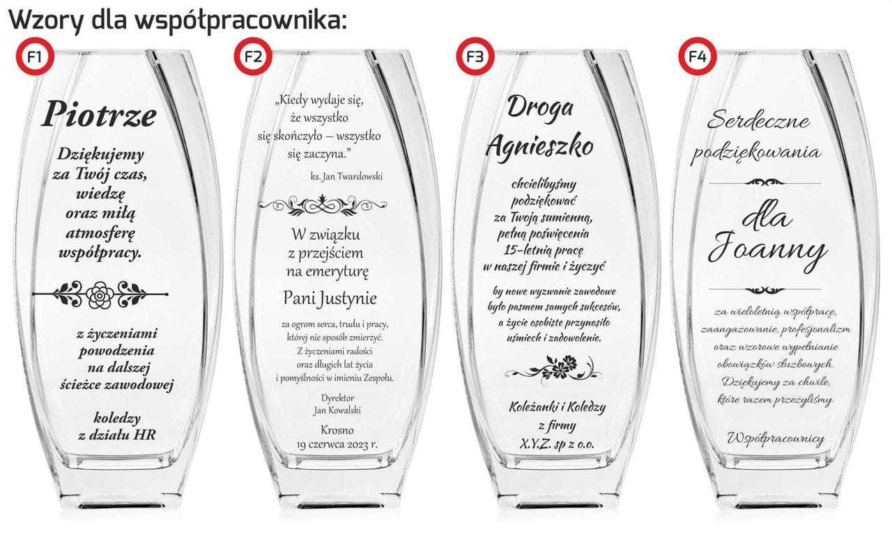 - w cenie zawarto koszt graweru po JEDNEJ stronie wazonu