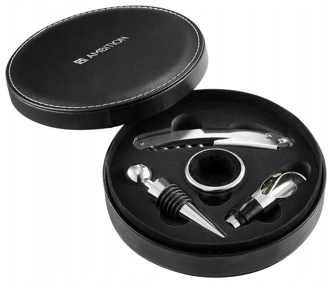 AMBITION Bolero akcesoria do otwierania wina w skórzanym etui 4el.