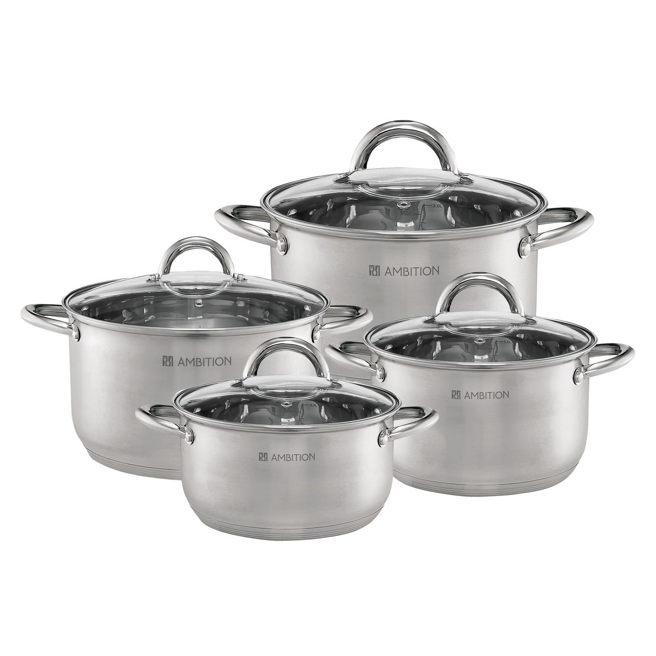 Zestaw garnków z pokrywkami AMBITION Solar stal nierdzewna 8-elementowy