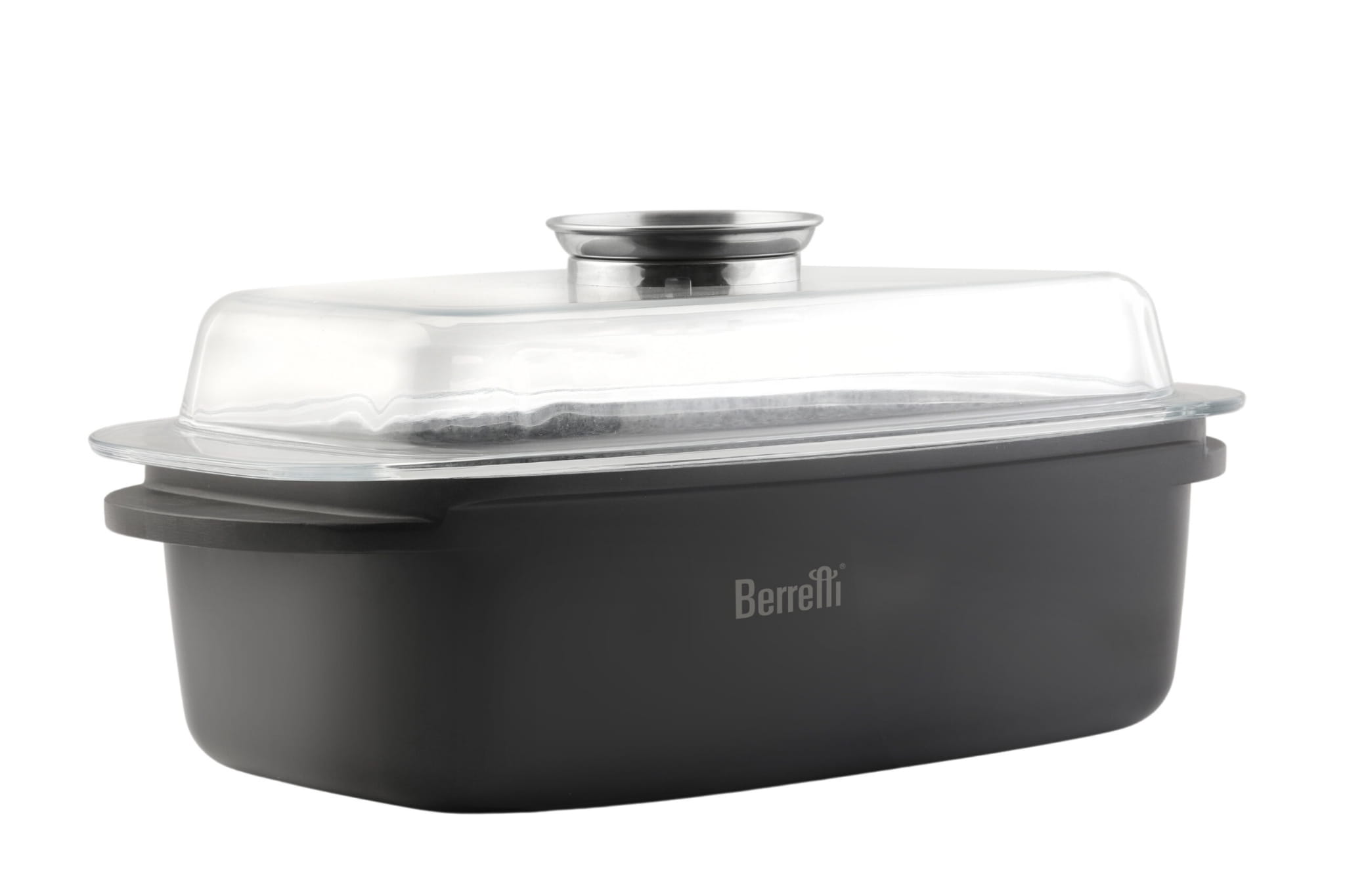 - W zestawie szklana pokrywa żaroodporna z aromatyzerem oraz silikonowe nakładki na rączki