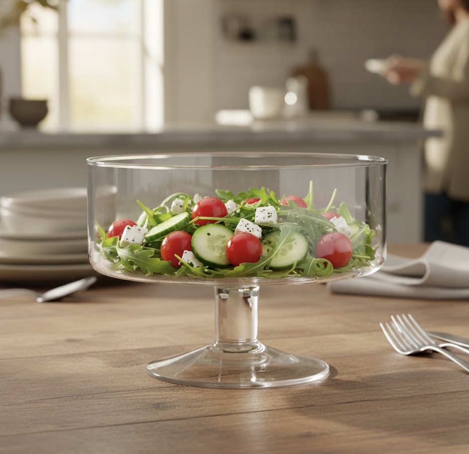 Duża szklana salaterka na nóżce na owoce, ciastka, przekąski Handmade 20cm