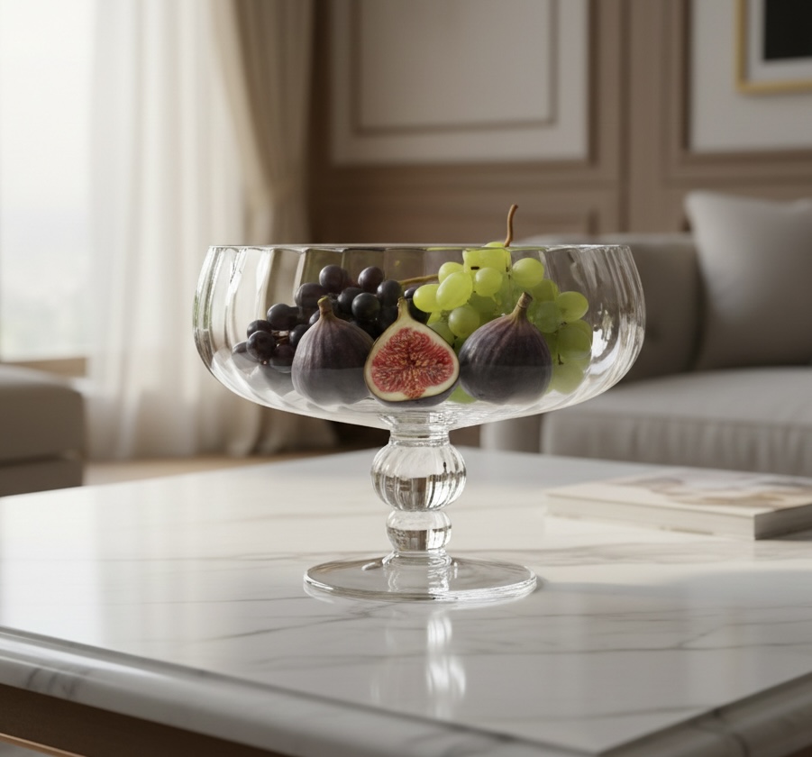 Duża szklana patera na nodze na owoce, ciastka, przekąski KROSNO Handmade OPTYK 23cm