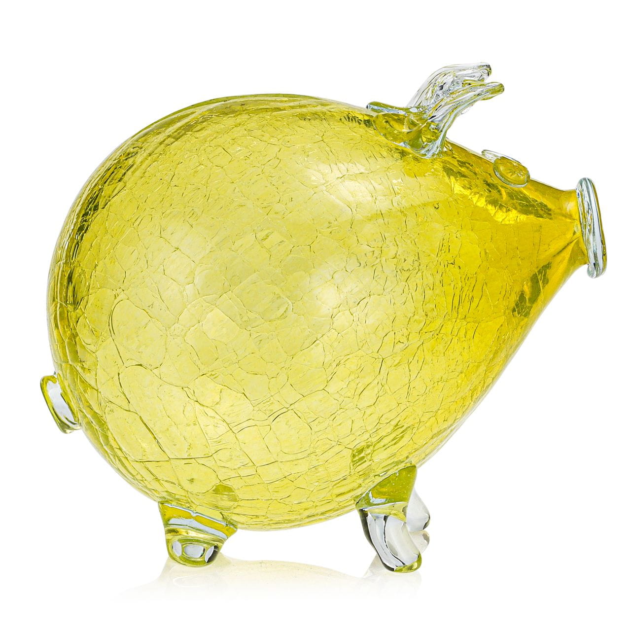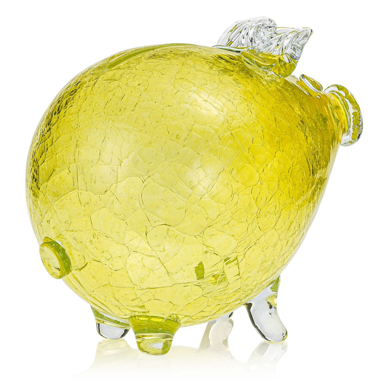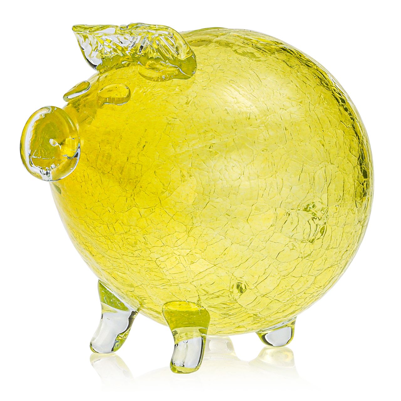 Duża szklana ręcznie wykonana skarbonka ŚWINKA "Crackle" - ŻÓŁTA