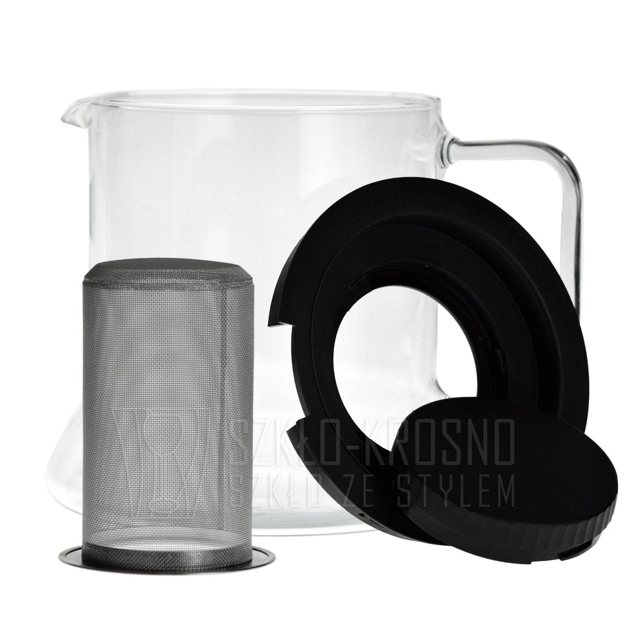 - Dzbanek ze stalowym zaparzaczem oraz plastikową pokrywką