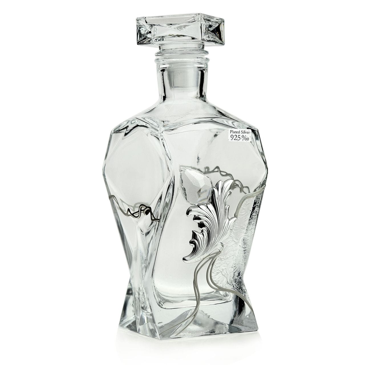 Ekskluzywna karafka dekoracyjna 750 ml zatapiana srebrną linią zakończoną ozdobnym kryształem
