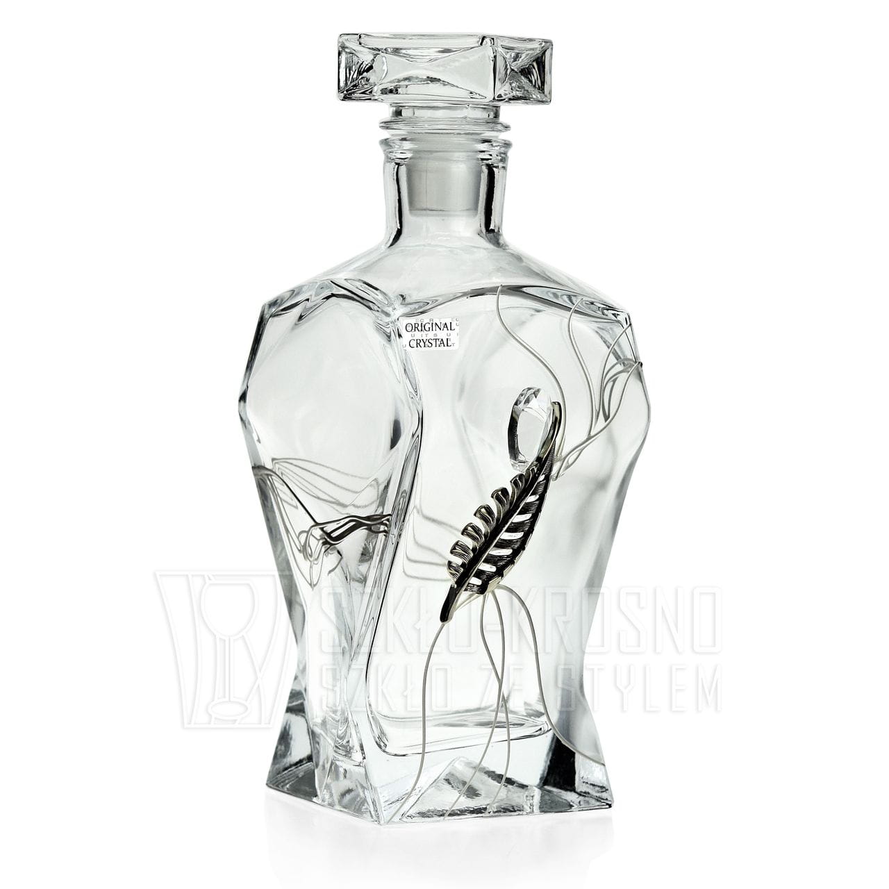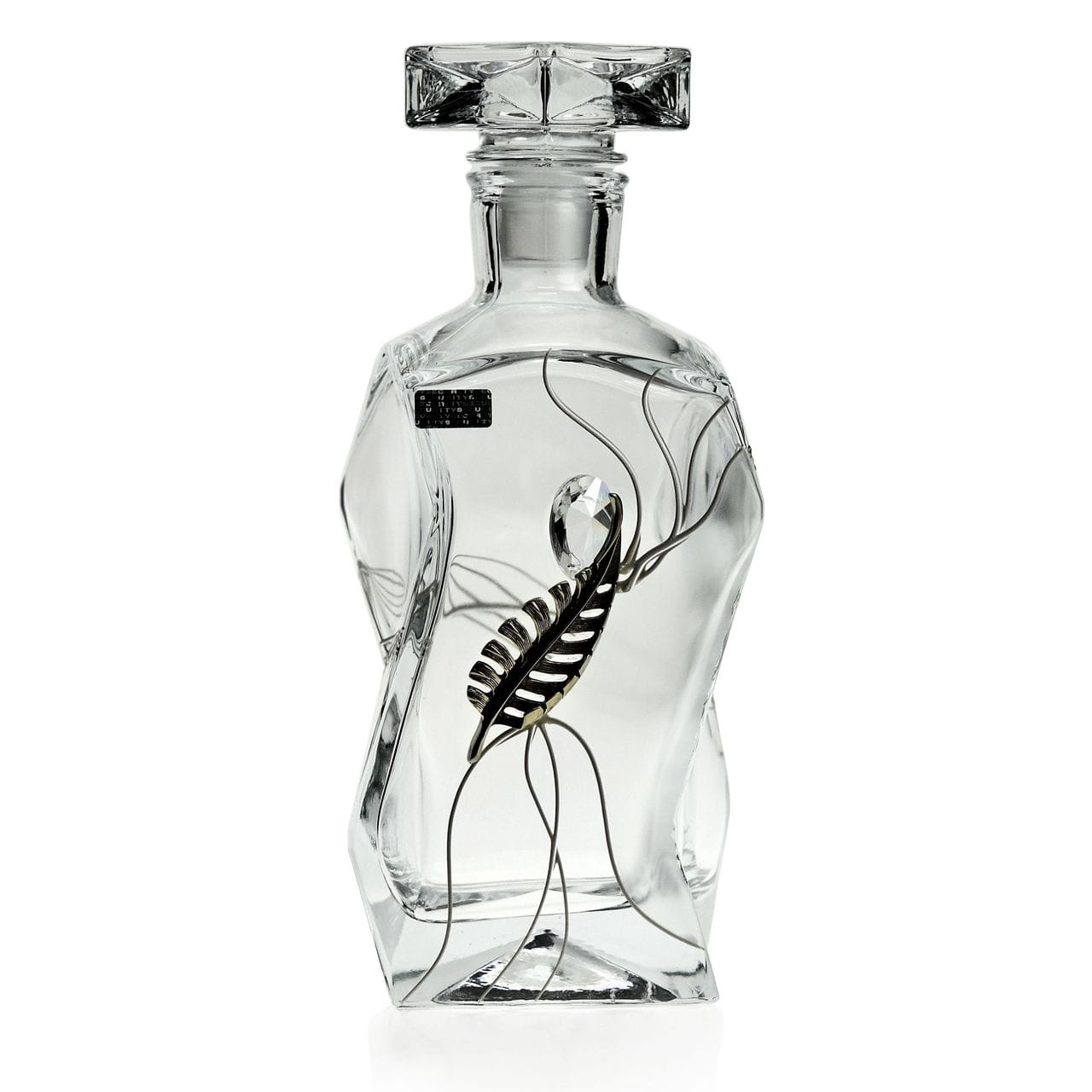Ekskluzywna karafka dekoracyjna 750ml zatapiana srebrną linią zakończoną ozdobnym piórkiem