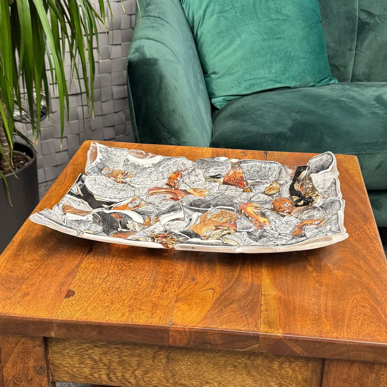 Ekskluzywny prostokątny szklany talerz na owoce, pizze 39x25 cm
