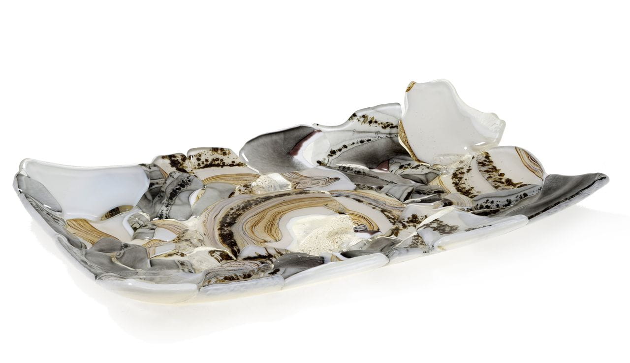 Ekskluzywny prostokątny szklany talerz na owoce, pizze 39x25 cm