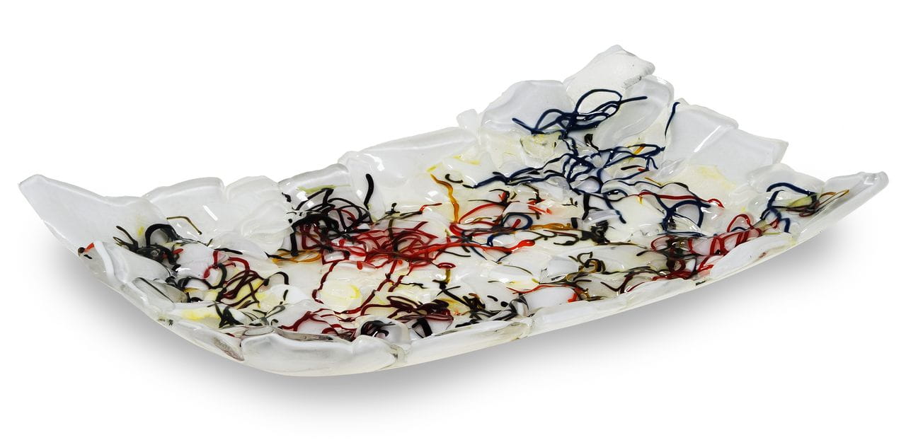 Ekskluzywny prostokątny szklany talerz na owoce, pizze 39x25 cm