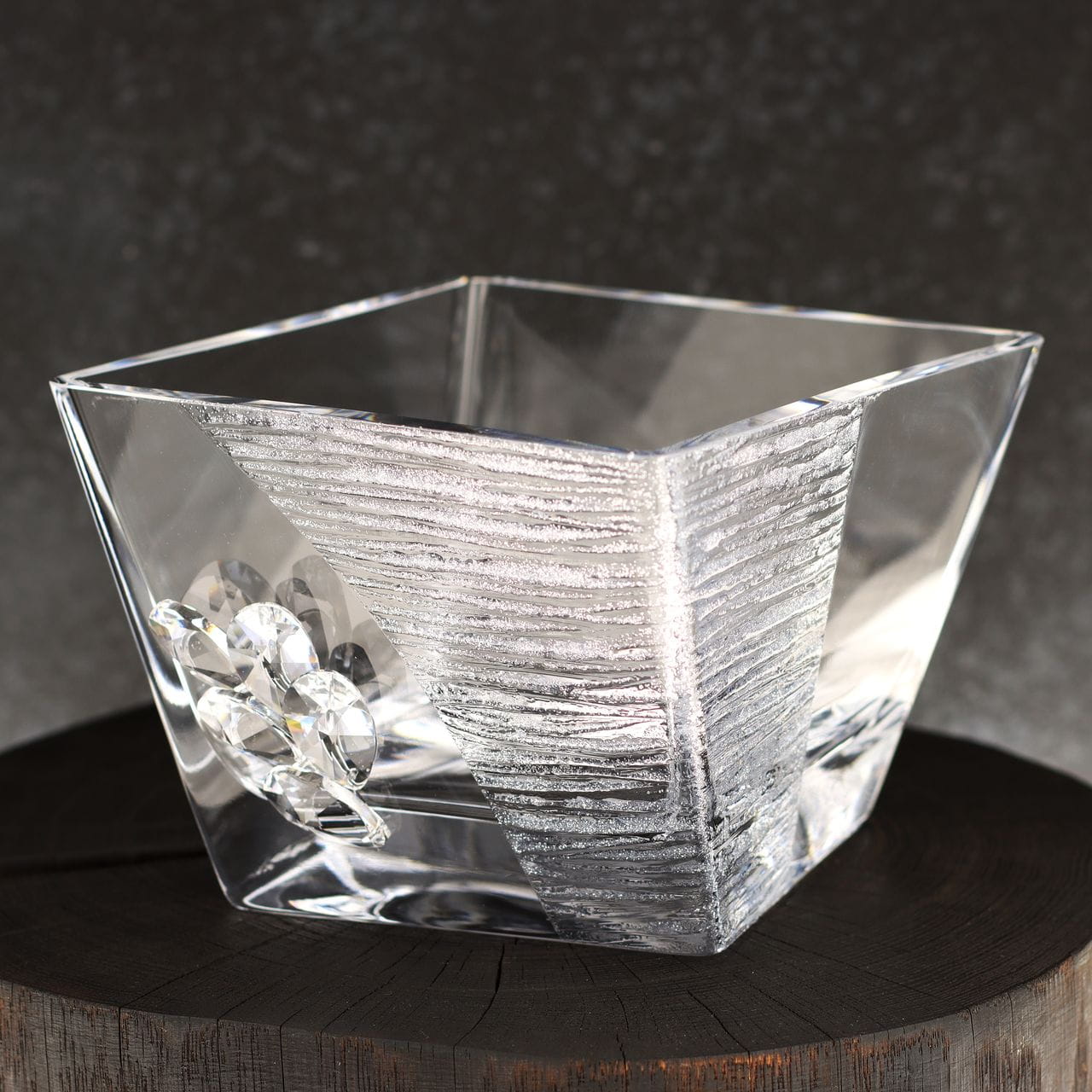Ekskluzywna salaterka dekoracyjna zatapiana matową powłoką oraz ozdobnymi kryształami