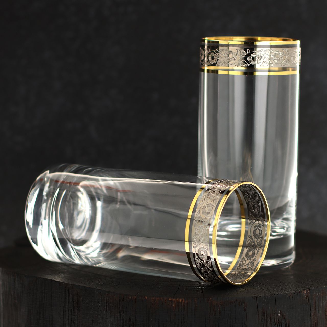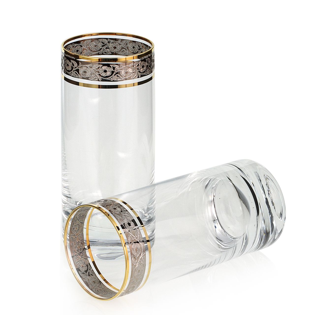 Ekskluzywny zestaw szklanek long drink ZŁOTO PLATYNA 390ml - 6 sztuk