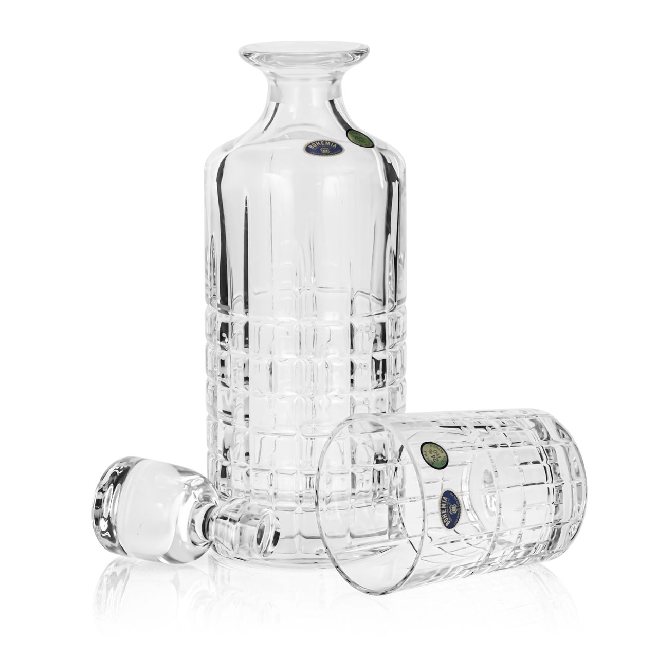 Zestaw przygotowany przez firmę Szkło-Krosno składający się z oryginalnych szklanek i karafki marki Bohemia, dostępny ze zdobieniem oraz drewnianą skrzynką Szkło-Krosno.