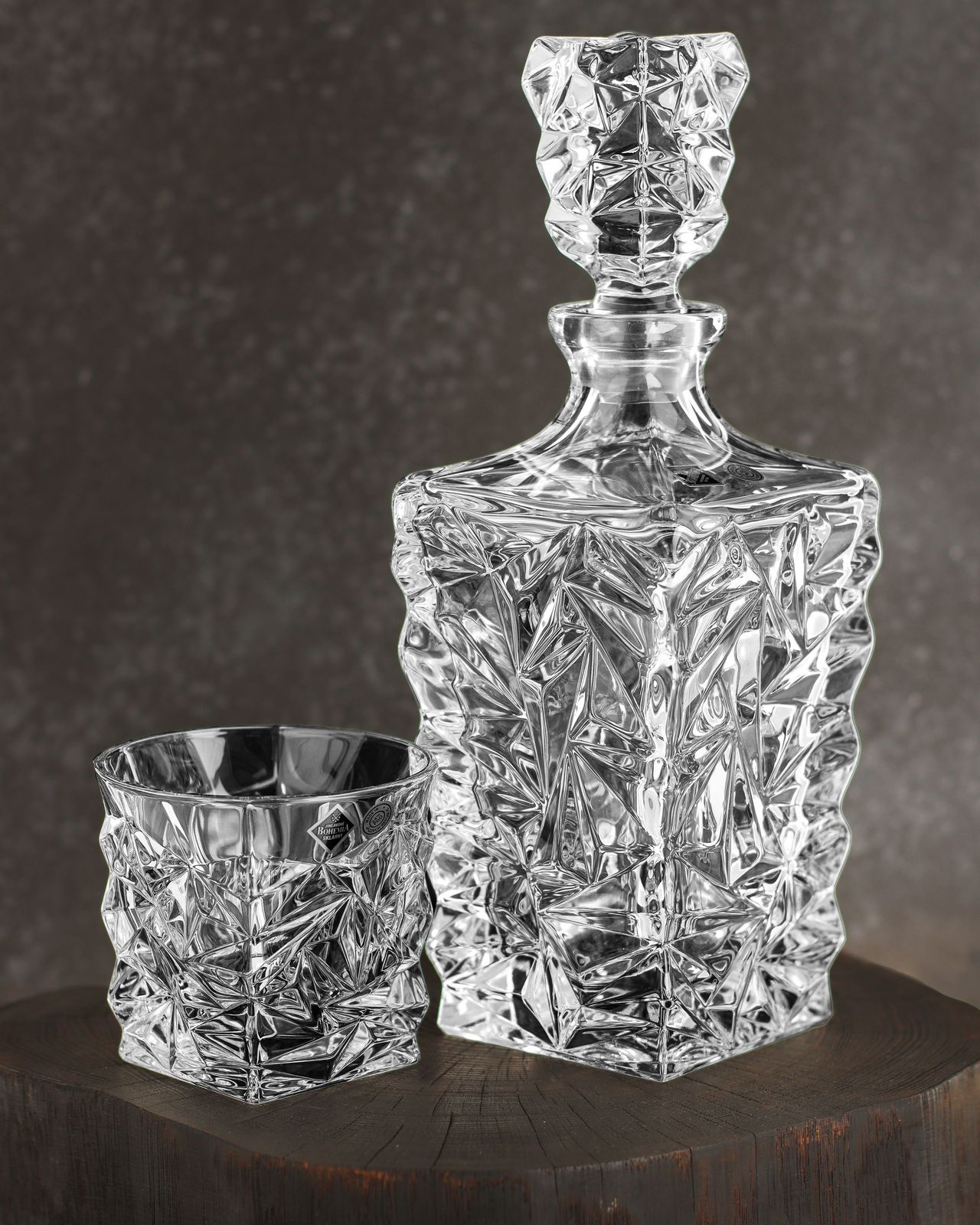 Ekskluzywny kryształowy zestaw do whisky Bohemia GLACIER 6+1 w skrzynce z GRAWEREM
