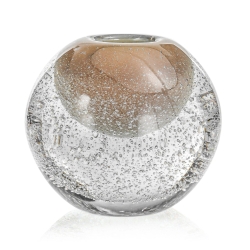 Ekskluzywny ręcznie robiony Wazon szklany na kwiaty bezbarwny/kawowy bąbelki HANDMADE 13,5cm