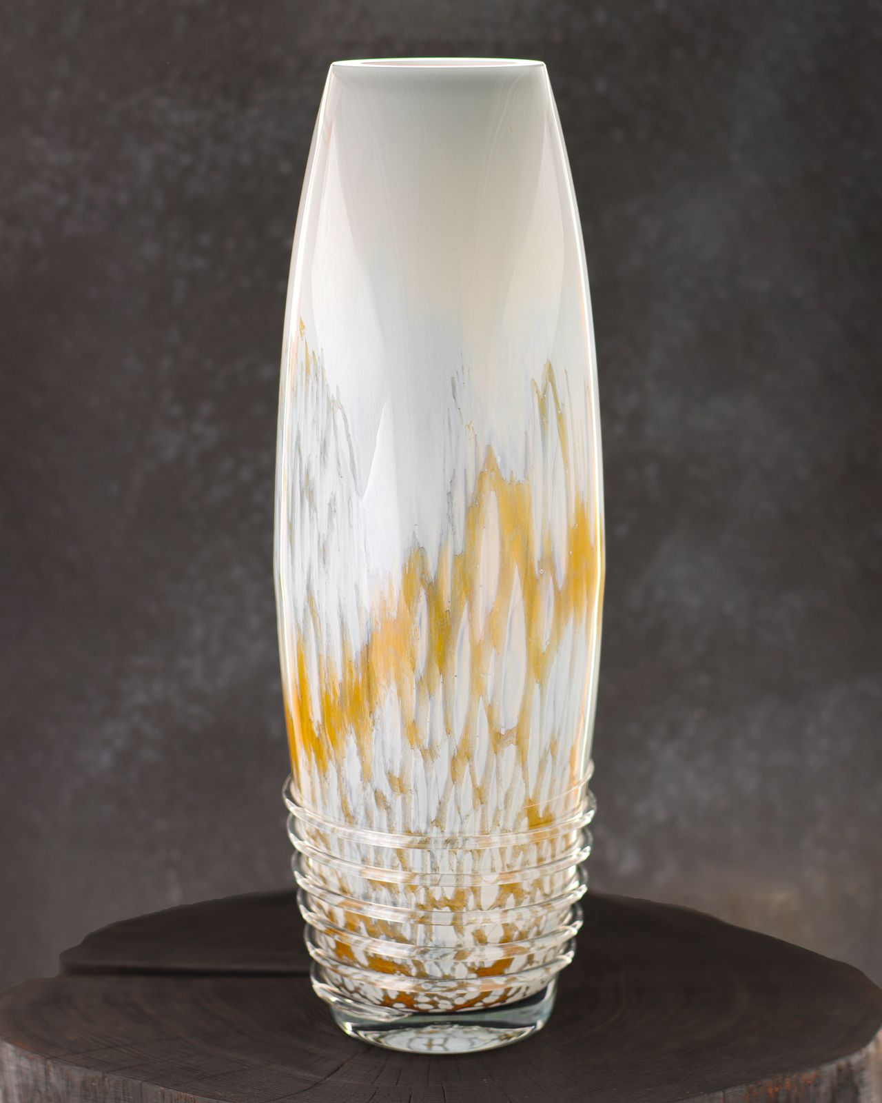 Ekskluzywny ręcznie robiony Wazon szklany na kwiaty biały HANDMADE 39 cm