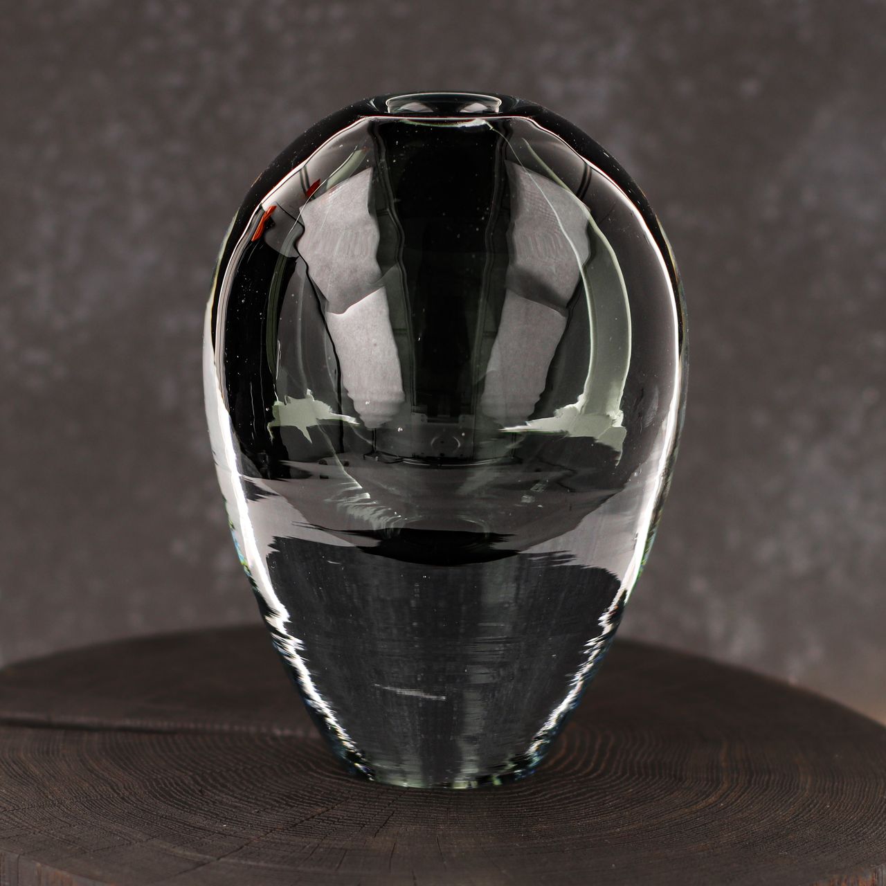 Ekskluzywny ręcznie robiony Wazon szklany na kwiaty grafitowy HANDMADE 18 cm