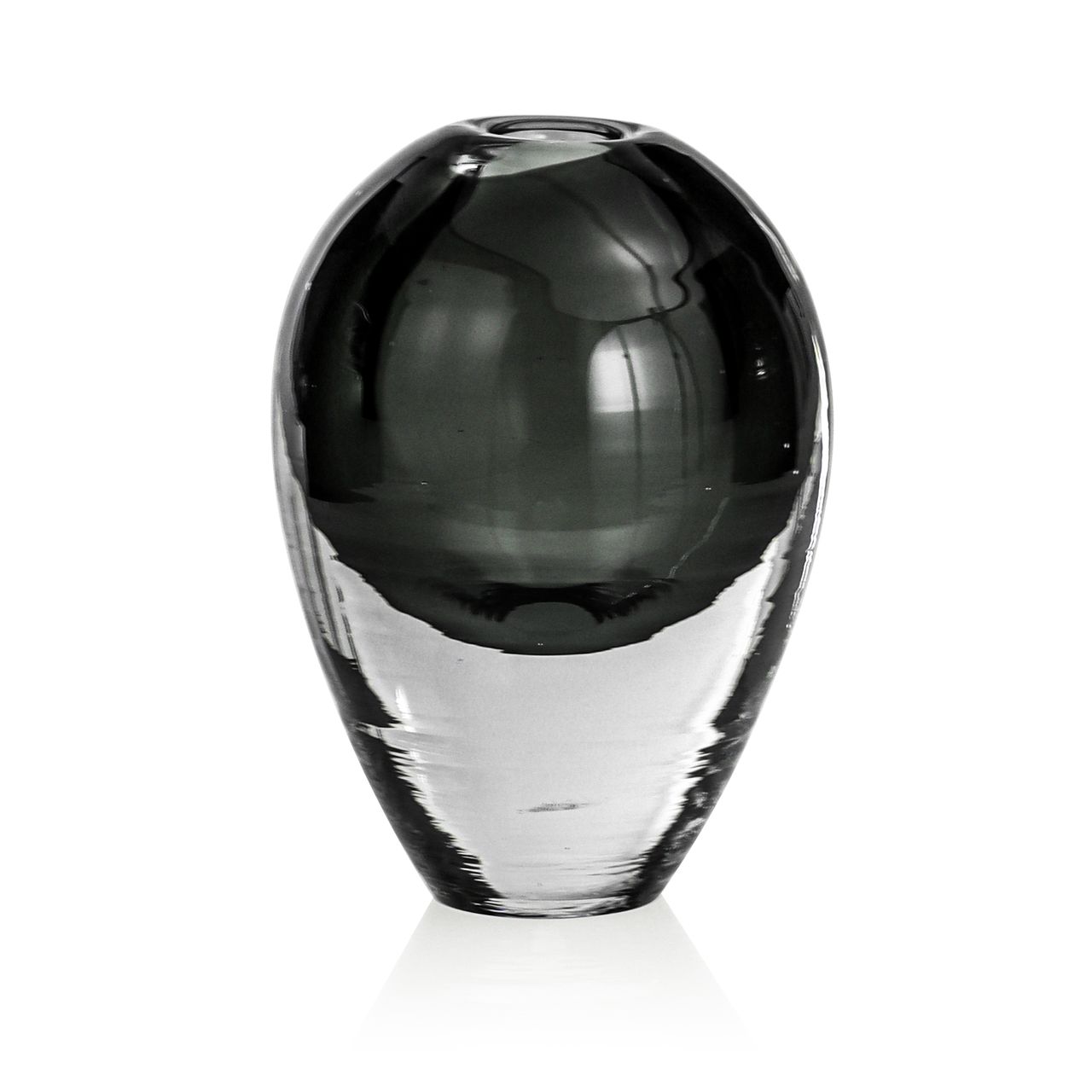 Ekskluzywny ręcznie robiony Wazon szklany na kwiaty grafitowy/przeźroczysty HANDMADE 18cm