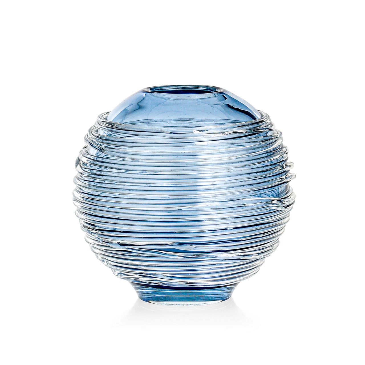 Ekskluzywny ręcznie robiony Wazon szklany na kwiaty niebieski HANDMADE ⌀ 15 cm