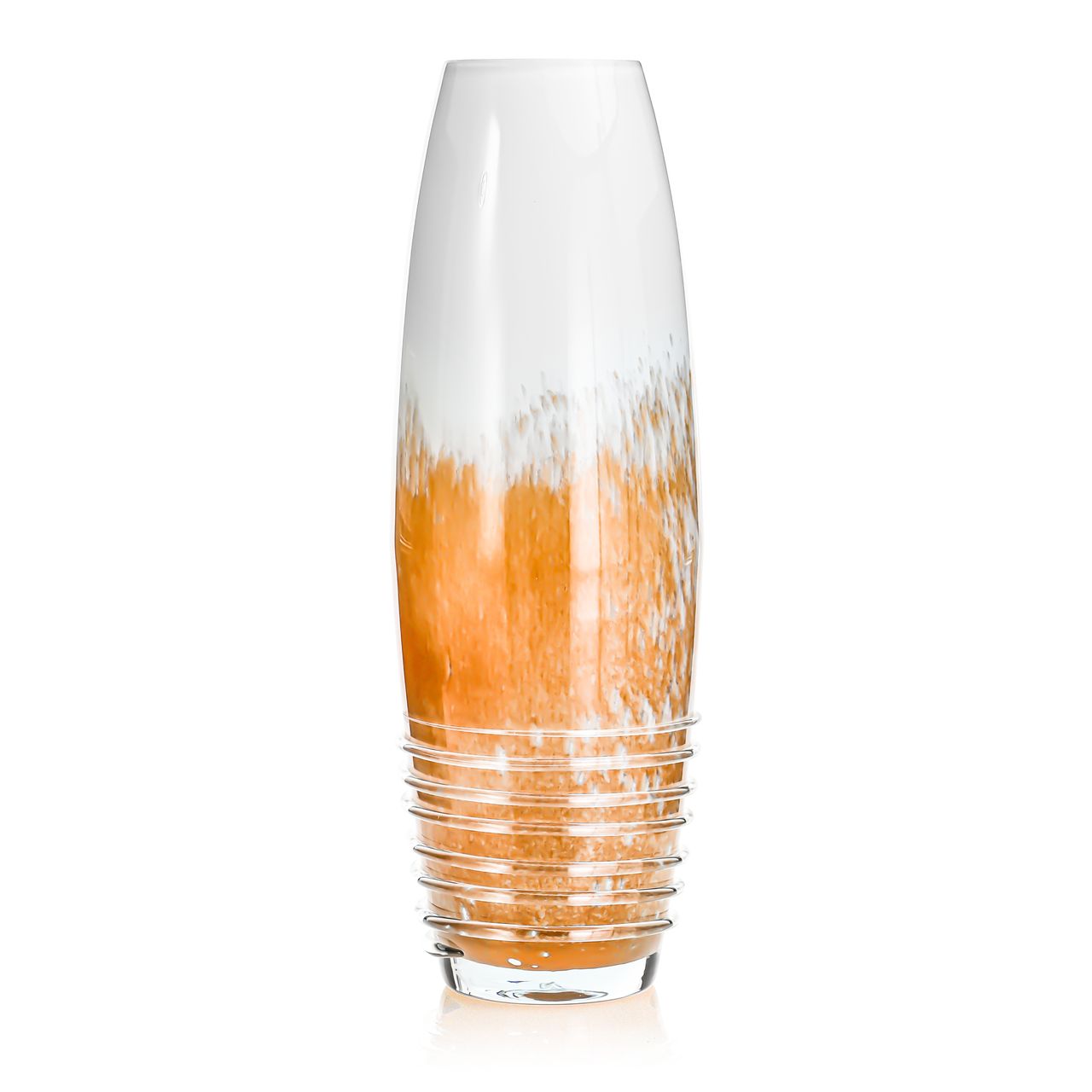 Ekskluzywny ręcznie robiony Wazon szklany na kwiaty biały/pomarańczowy HANDMADE 39 cm