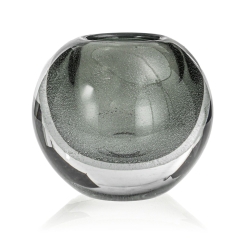 Ekskluzywny ręcznie robiony Wazon szklany na kwiaty szary HANDMADE 13,5 cm