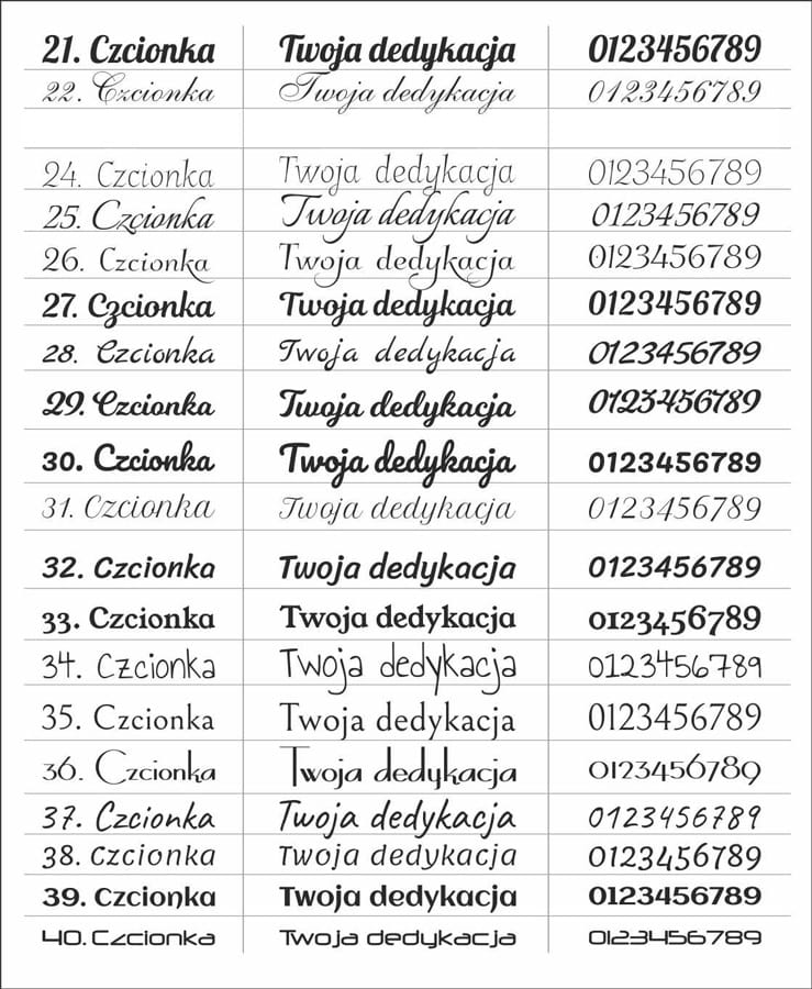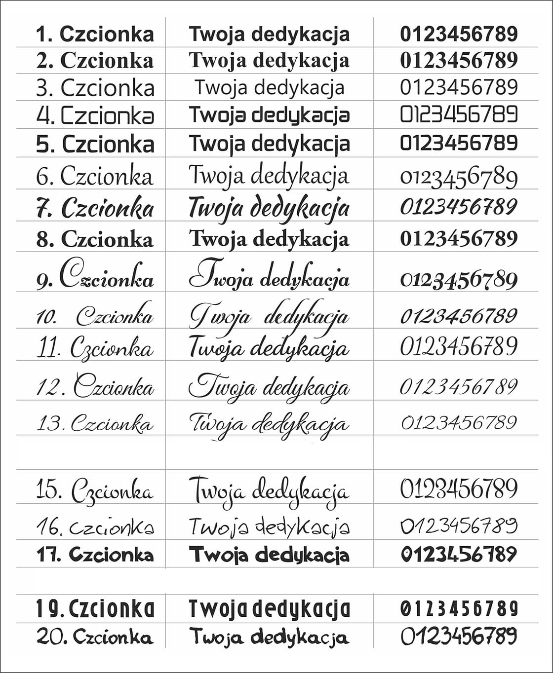 - jeżeli czcionka nie zostanie wskazana przez klienta po zakupie - zostanie dobrana przez grafika w ten sposób aby grawer był możliwie najbardziej czytelny i wyraźny.