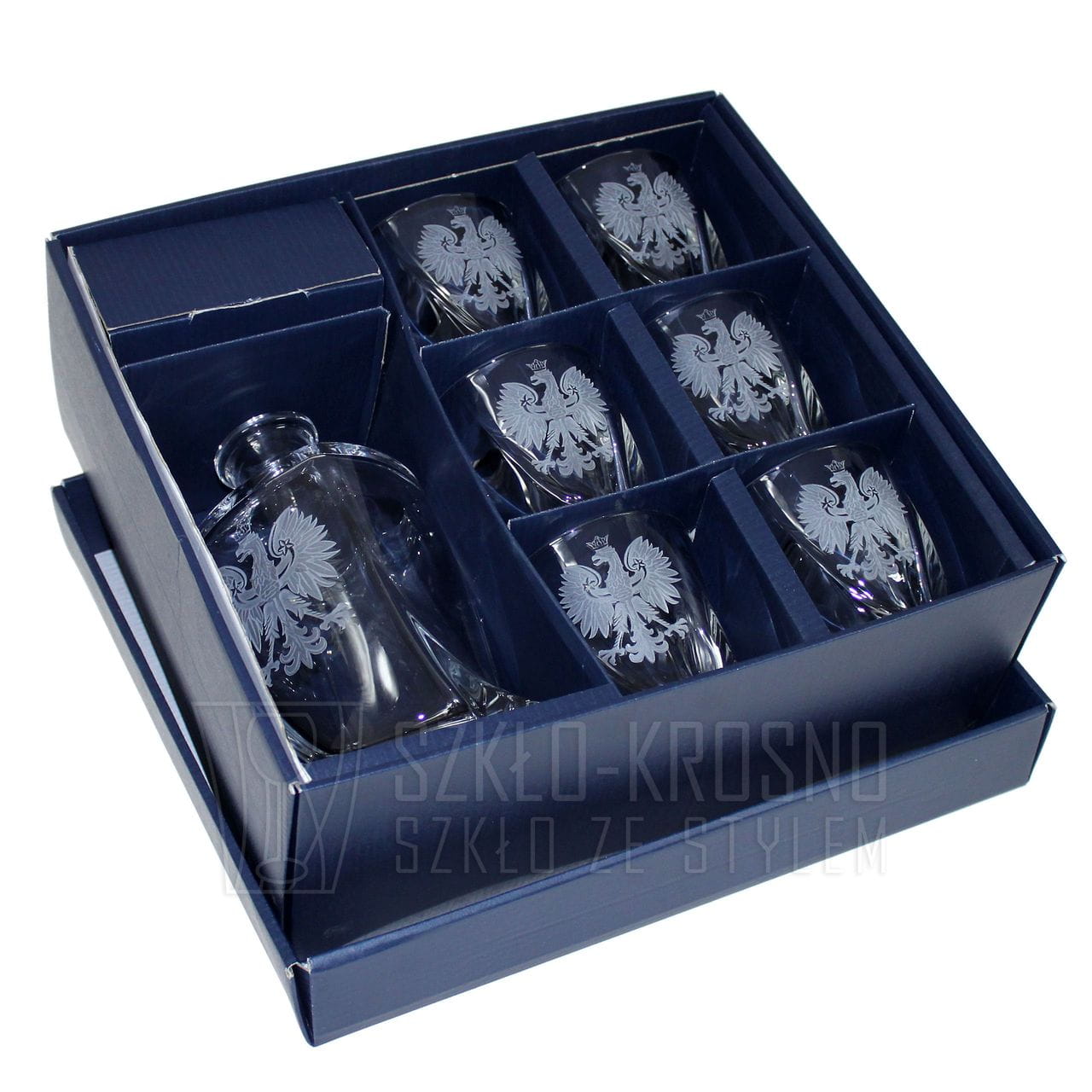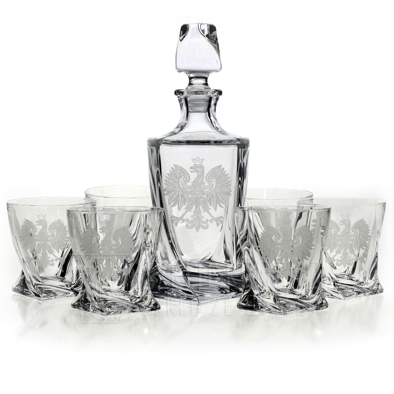 Ekskluzywny zestaw do whisky z kryształowego szkła karafka 850ml + 6 szklanek 340ml z grawerem ORZEŁ POLSKA