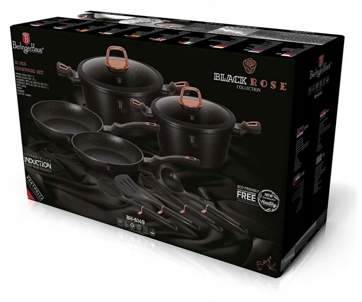 Zestaw garnków, patelni oraz przyborów kuchennych Berlinger Haus black rose collection BH-6149