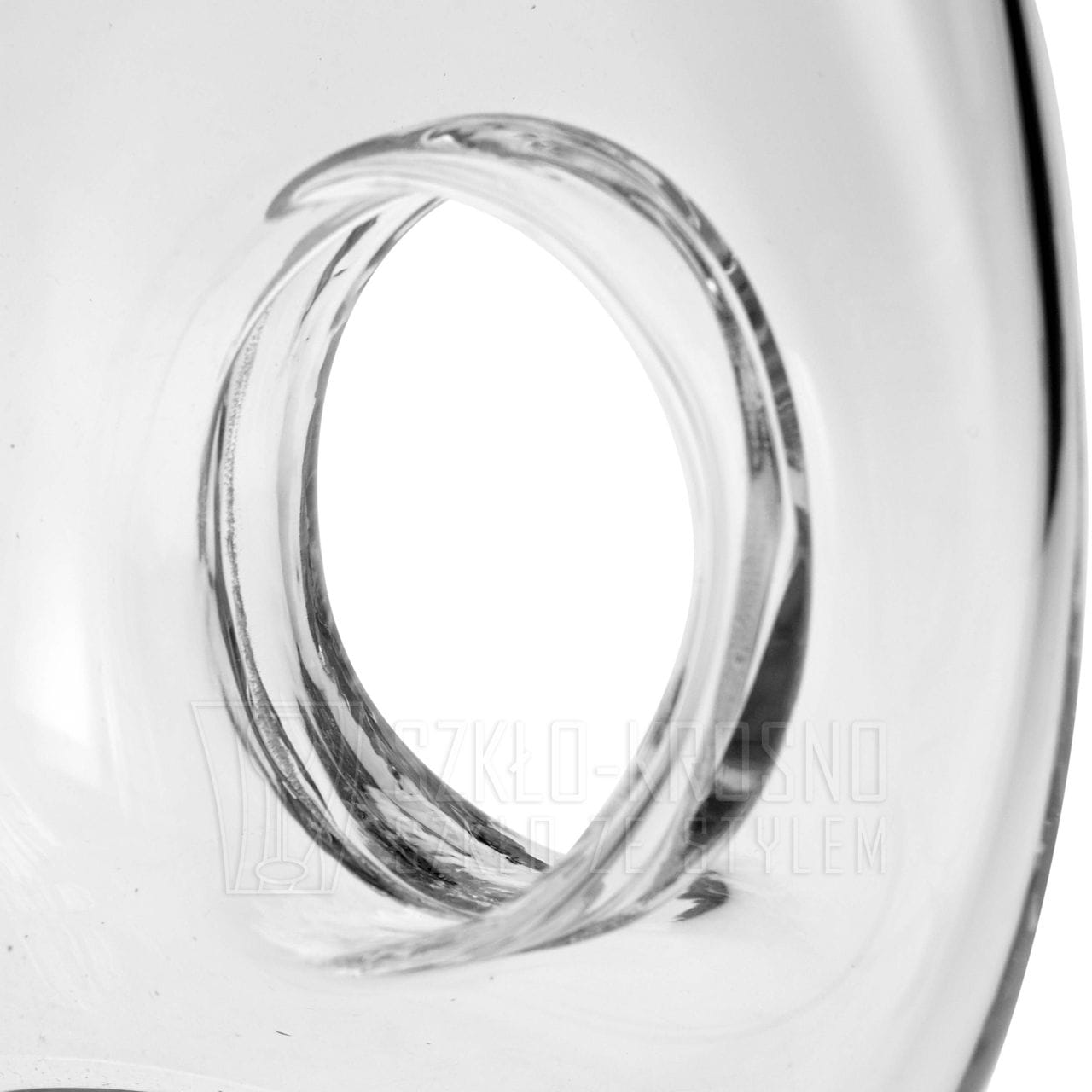 W strukturze szkła mogą być widoczne drobne pęcherzyki powietrza lub delikatne nierówności – to naturalny efekt procesu dmuchania szkła, charakterystyczny dla wyrobów rzemieślniczych.