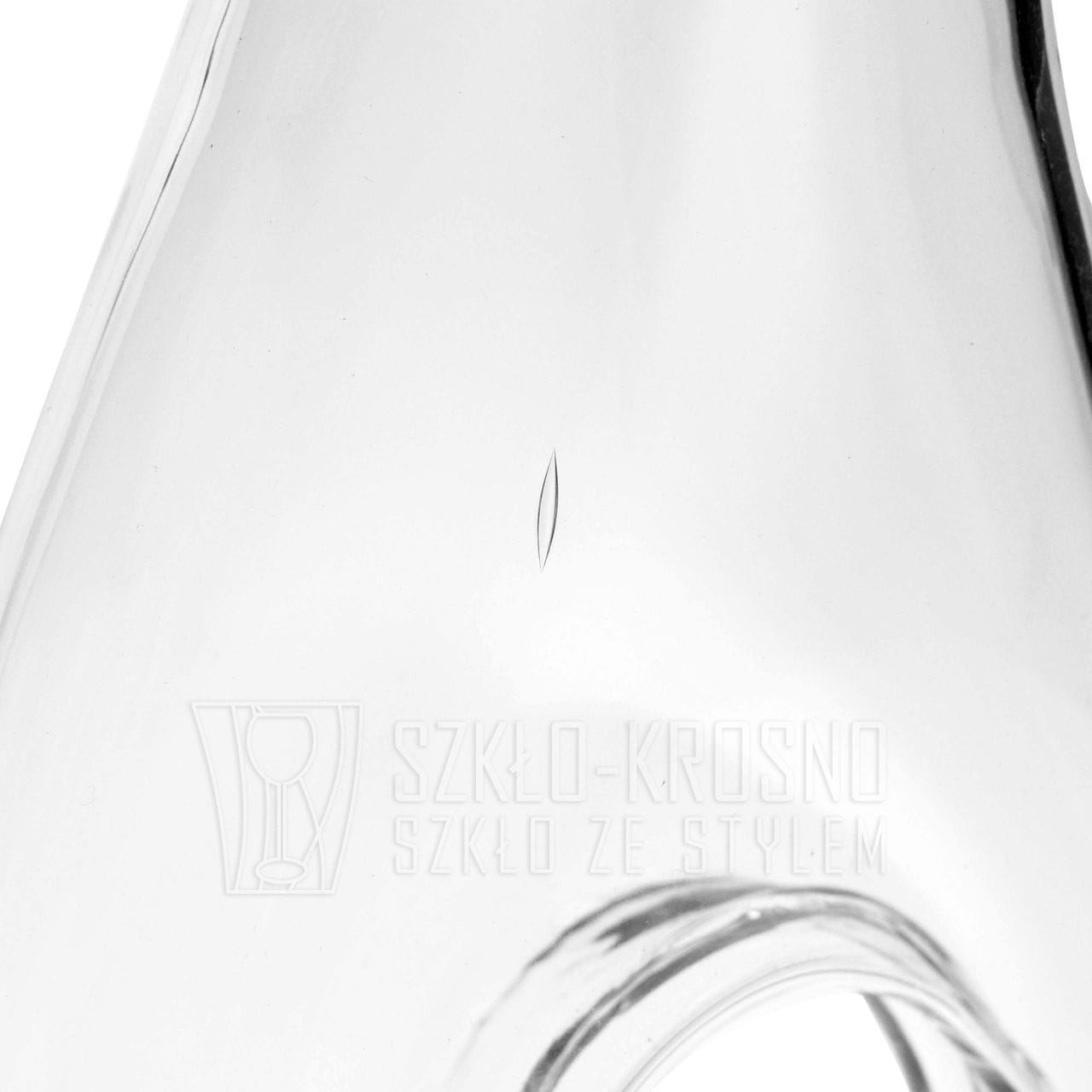Dzbanek wykonany jest metodą ręcznego formowania szkła, co sprawia, że każdy egzemplarz jest unikalny. W trakcie produkcji mogą pojawić się subtelne różnice w kształcie, grubości szkła czy detalach takich jak szyjka, uchwyt czy dziobek.