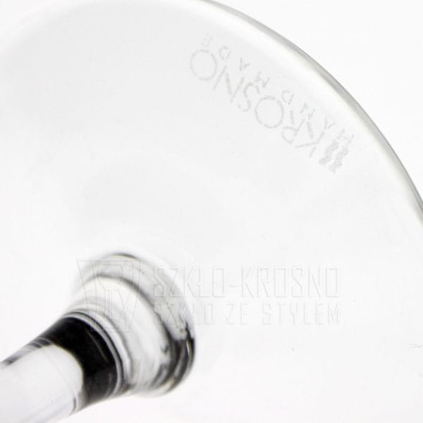 Każdy kieliszek sygnowany jest logo producenta w formie naklejki którą w łatwy sposób można usunąć oraz subtelnym grawerem laserowym KROSNO HANDMADE na spodzie wyrobu.