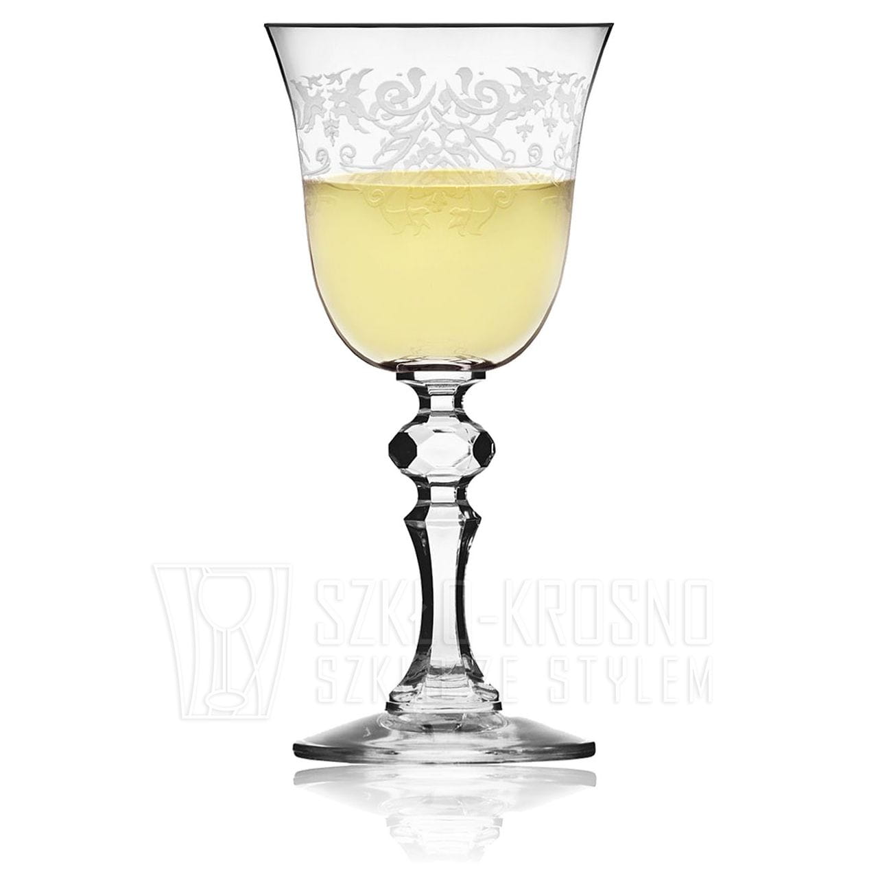 - delikatny bezbarwny ornament wokół czarki kieliszków,