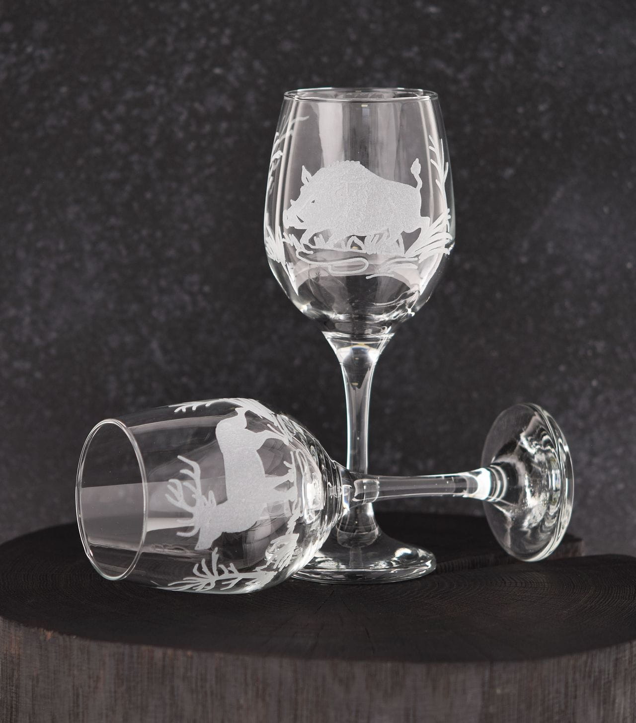 Kieliszki do wina 250ml zdobione motywami myśliwskimi