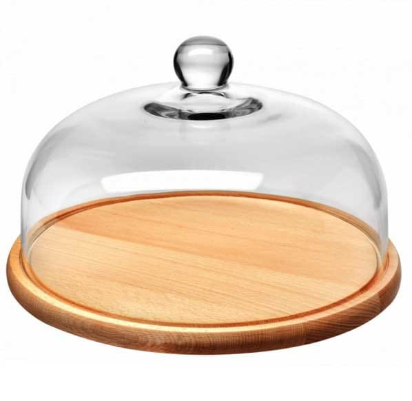 Klosz z drewnianą paterą Glamour KROSNO 28,5cm doskonały do podawania i przechowywania ciast lub owoców.