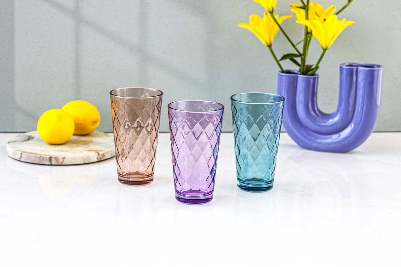 Kolorowe wysokie szklanki do soku, drinków Maia 370ml 6szt