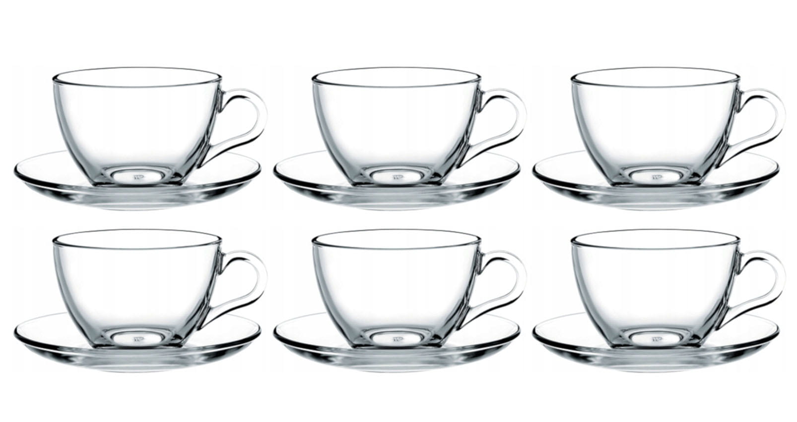 Szklane filiżanki do kawy herbaty Pasabahce Basic 200ml + 6 spodków