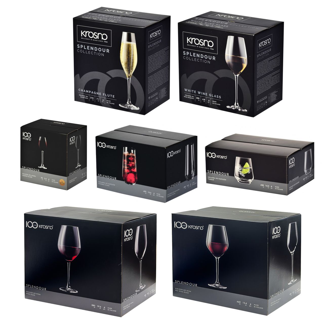 Każdy typ kieliszków/szklanek pakowany osobno w fabryczne opakowania producenta.