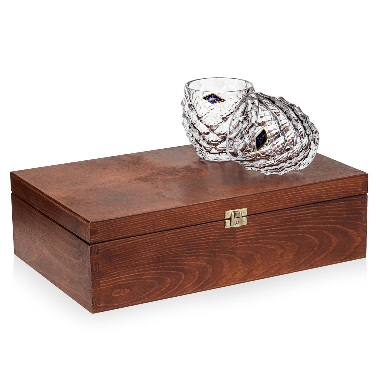 Ekskluzywne kryształowe szklanki do whisky Bohemia Morris 340ml w szykownej drewnianej skrzynce z możliwością graweru własnej dedykacji/życzeń