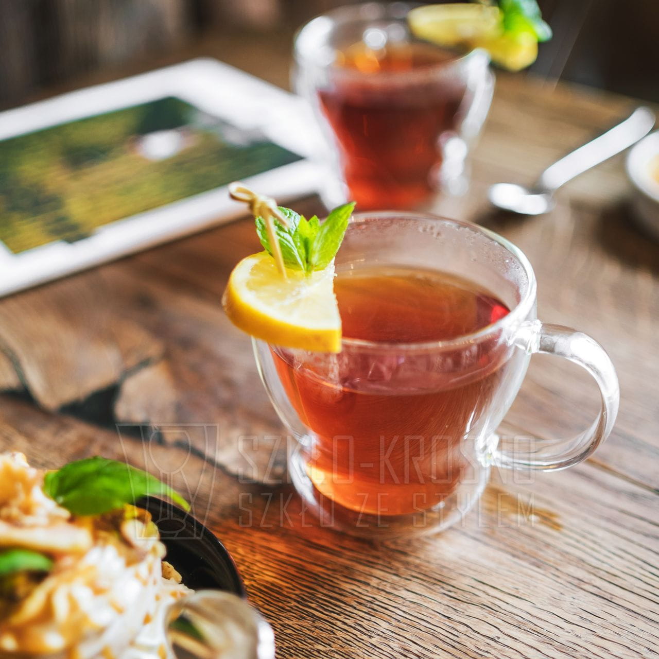 Szkło termiczne umożliwia utrzymanie wysokiej temperatury przez długi czas a dzięki podwójnej ściance zewnętrzna część szkła jest zawsze chłodna co zapobiega poparzeniu dłoni.