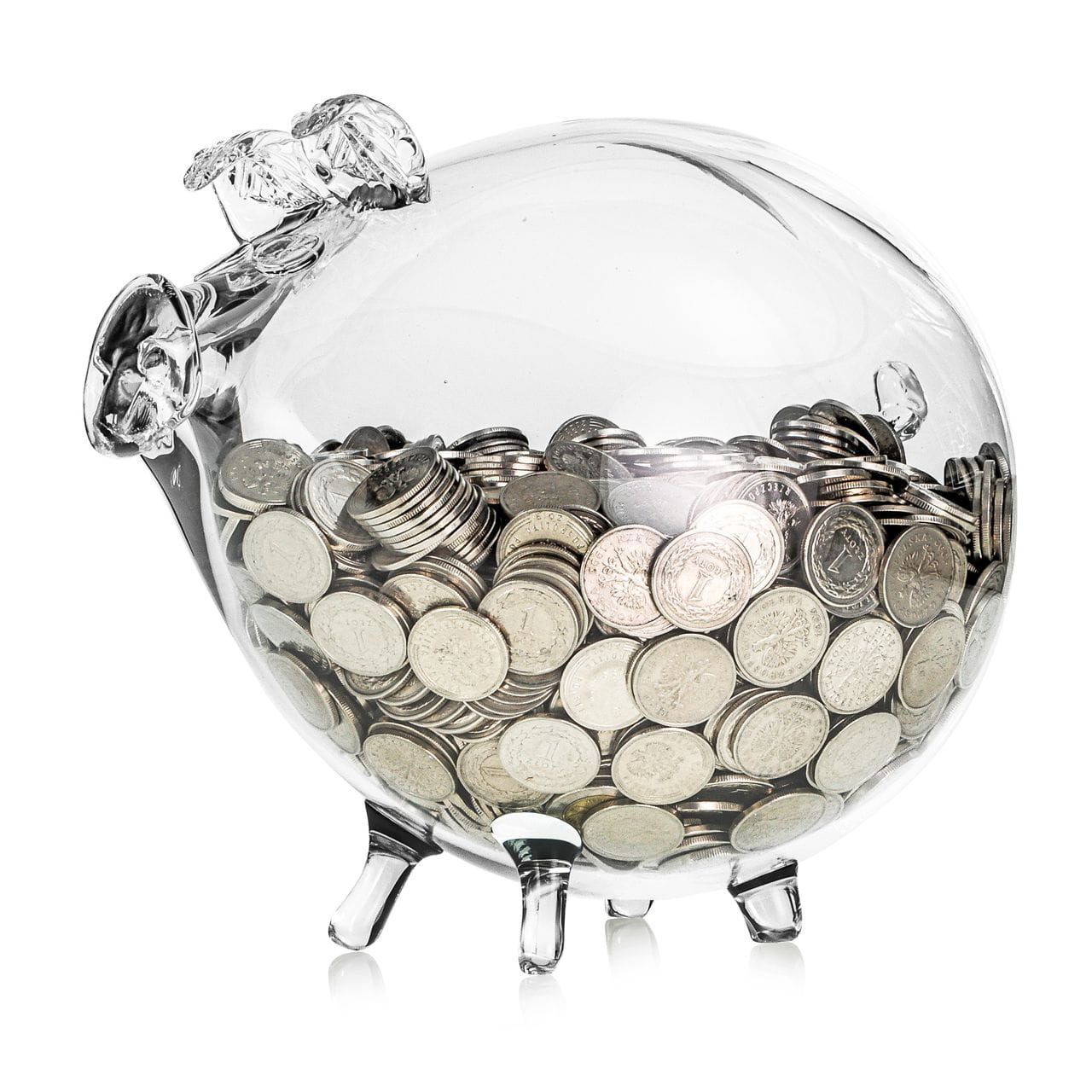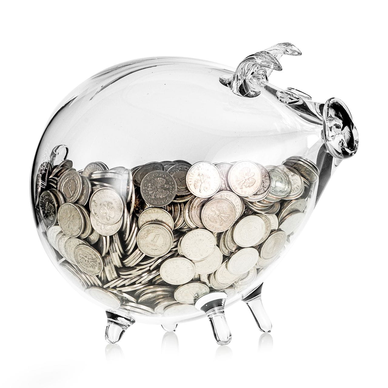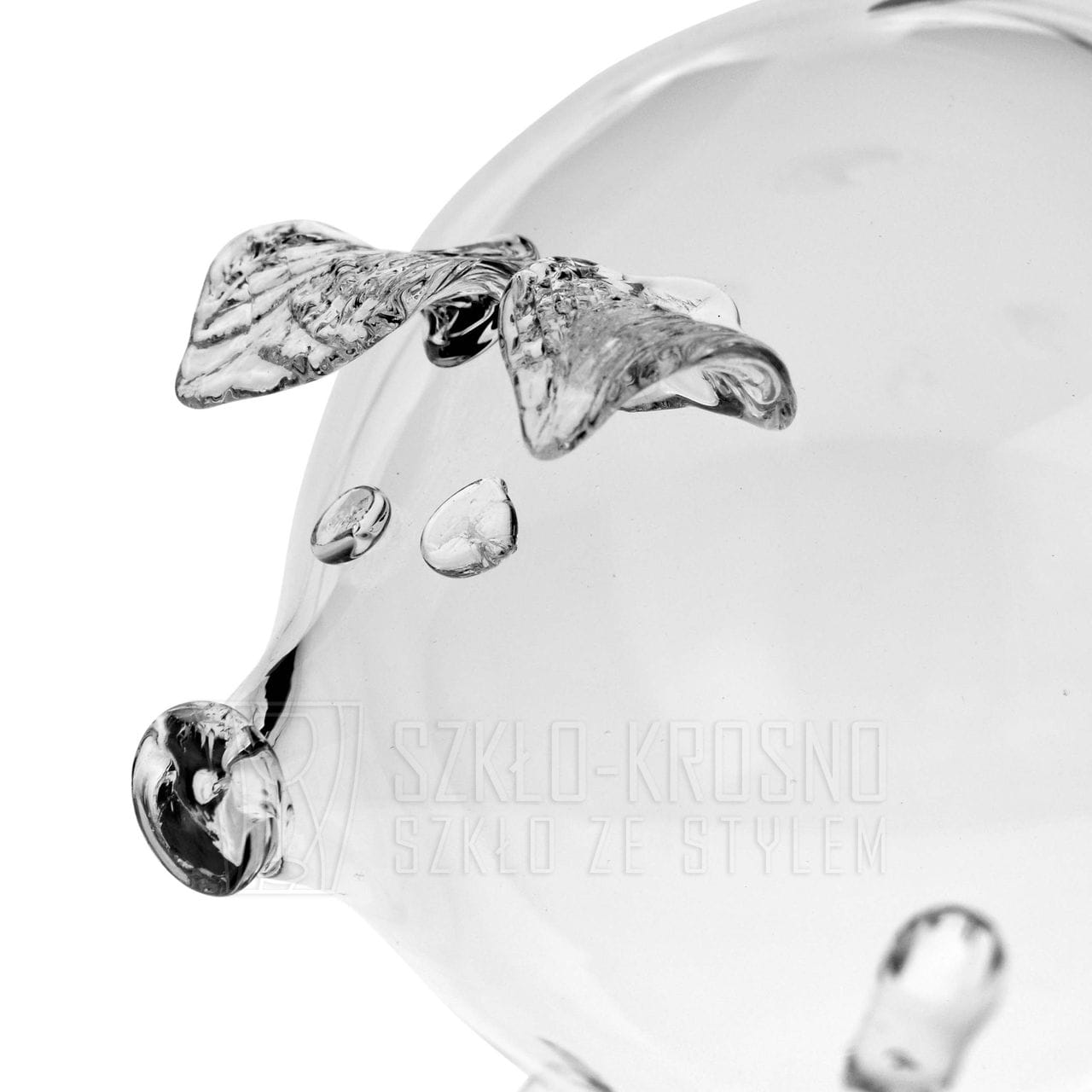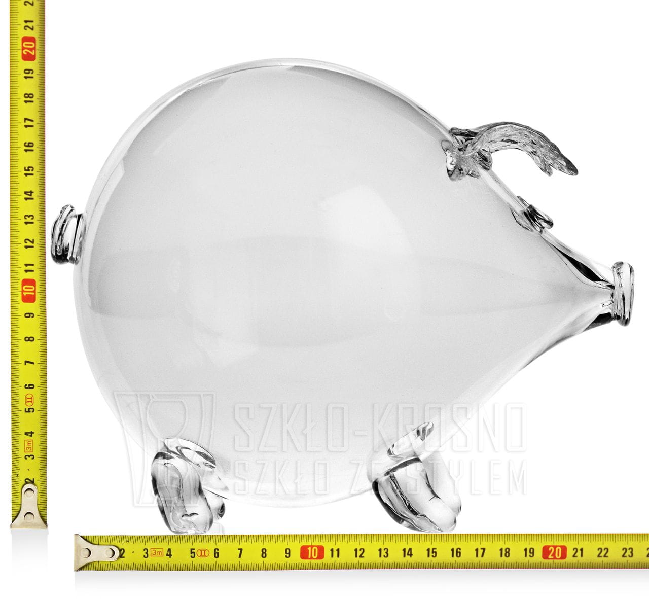 MEGA duża szklana ręcznie wykonana skarbonka ŚWINKA bezbarwna