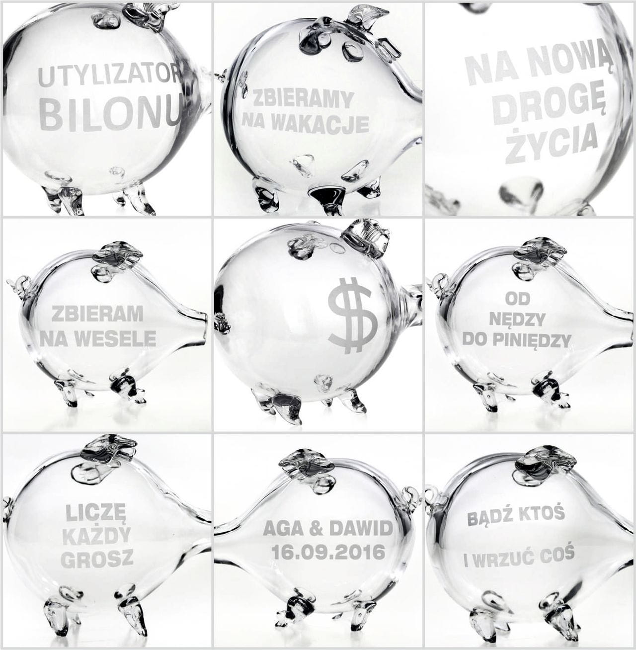 MEGA duża szklana skarbonka ŚWINKA przeźroczysta z grawerem indywidualnym TWÓJ NAPIS