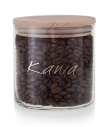 Pojemnik szklany 550ml z drewnianą pokrywką i złotym nadrukiem - KAWA