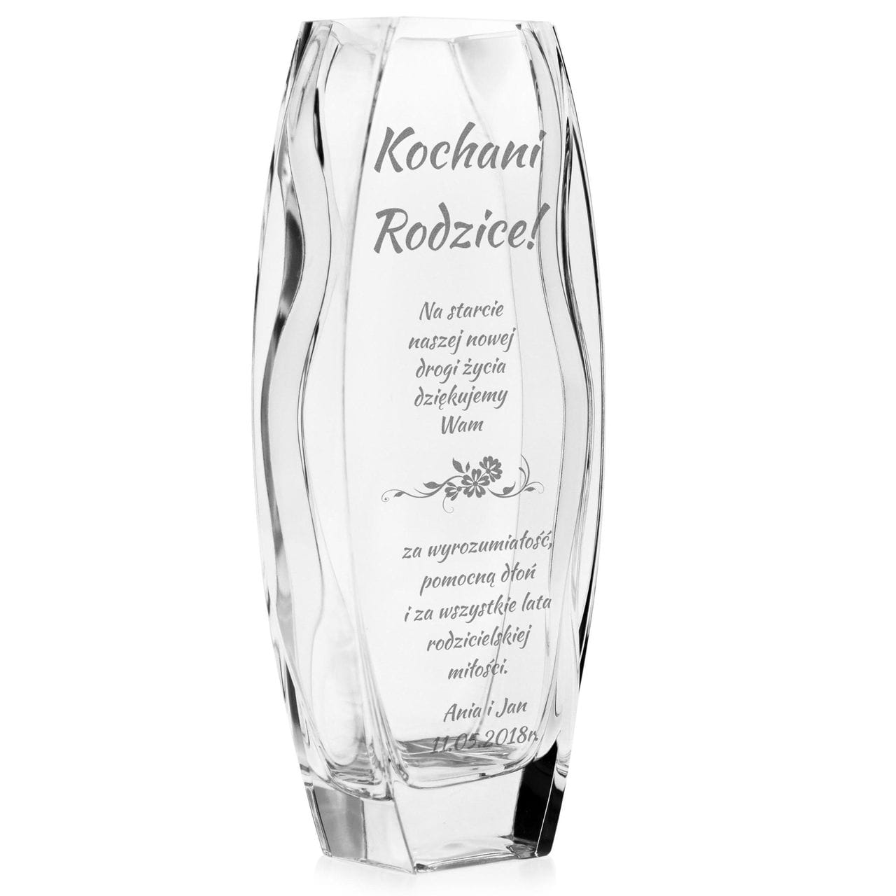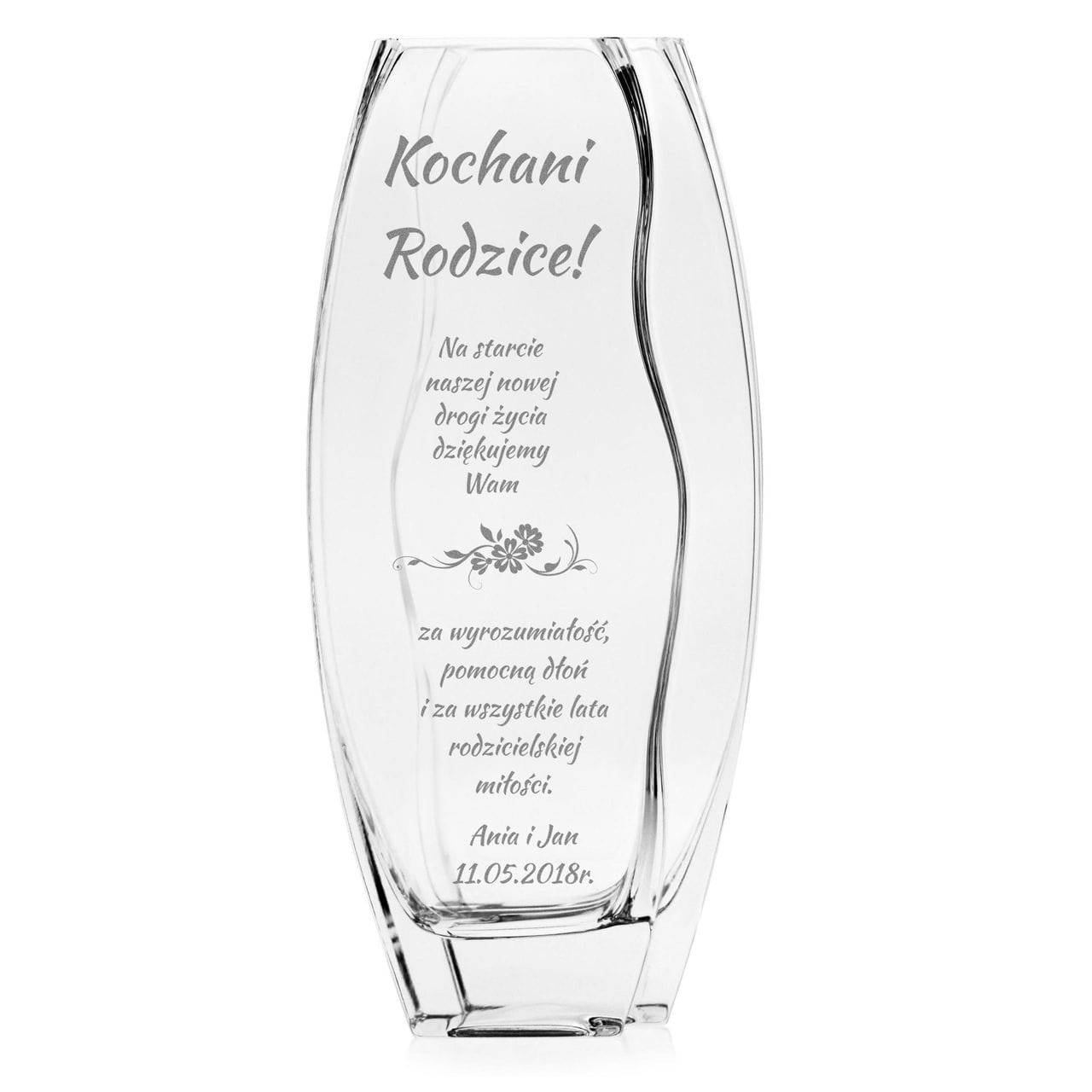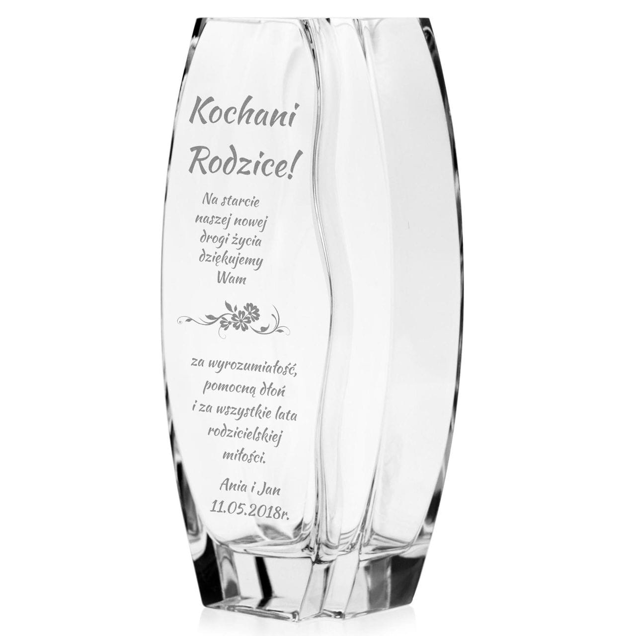 Piękny szklany wazon dekoracyjny 26cm z grawerem, na ślub, podziękowania