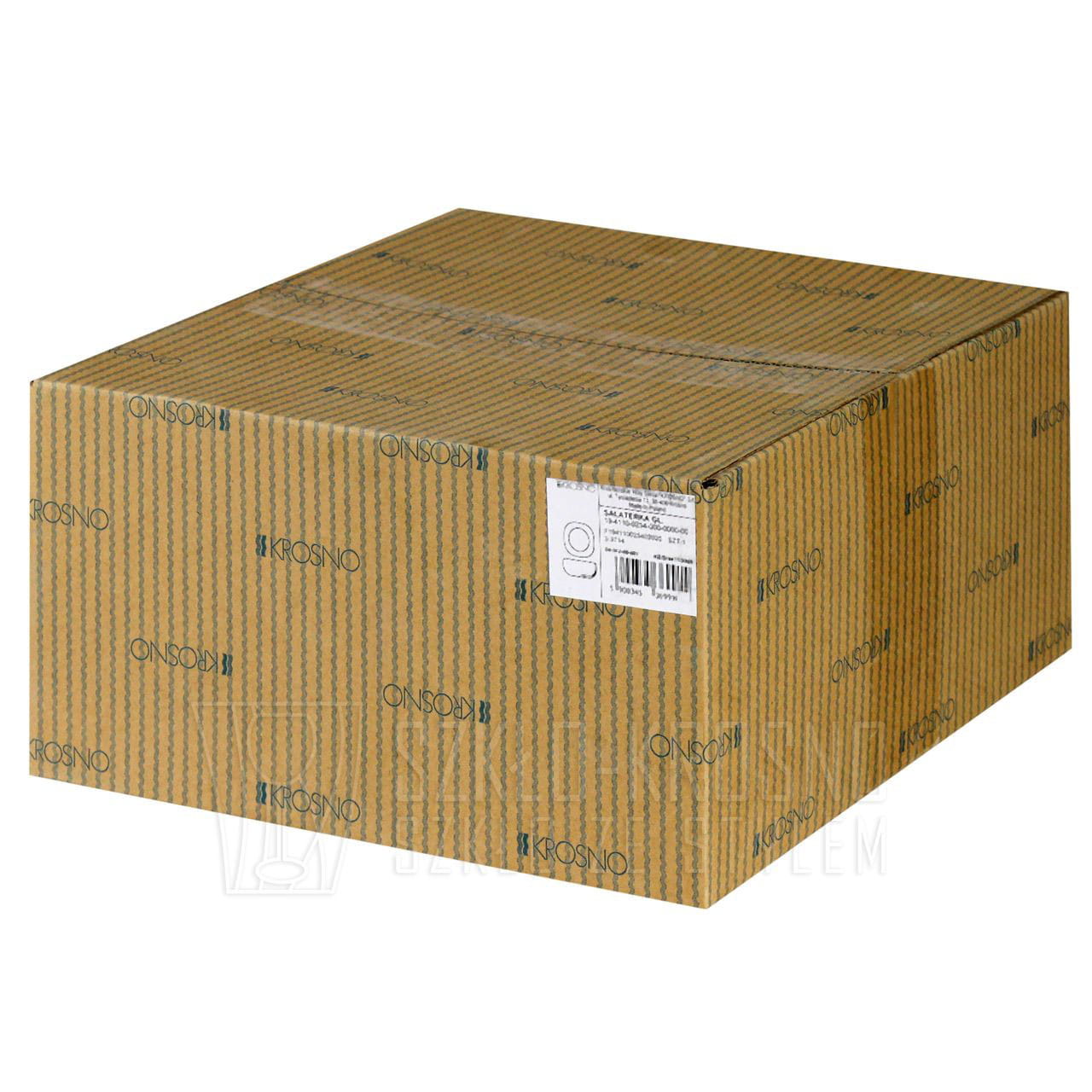 Salaterka sygnowana jest logo producenta w formie naklejki którą w łatwy sposób można usunąć oraz subtelnym grawerem laserowym KROSNO HANDMADE na spodzie wyrobu.