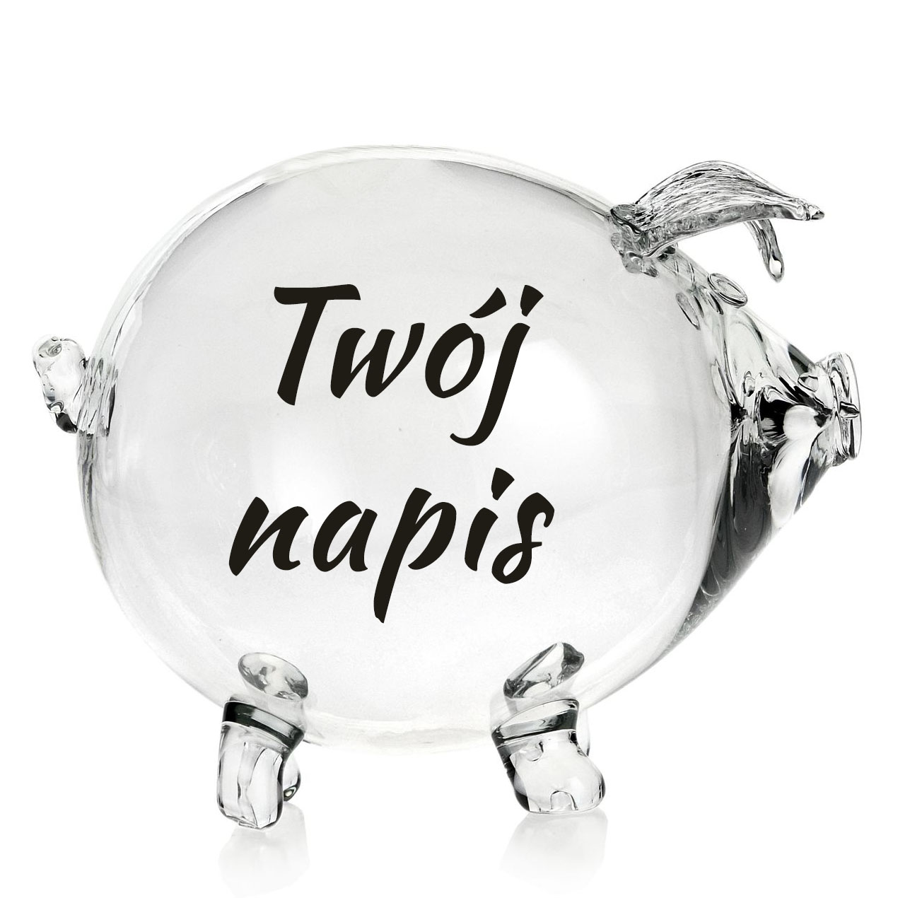 Skarbonka ŚWINKA szklana z dowolnym NADRUKIEM - napis CZARNY