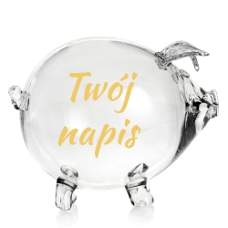Skarbonka ŚWINKA szklana z dowolnym NADRUKIEM - napis ZŁOTY