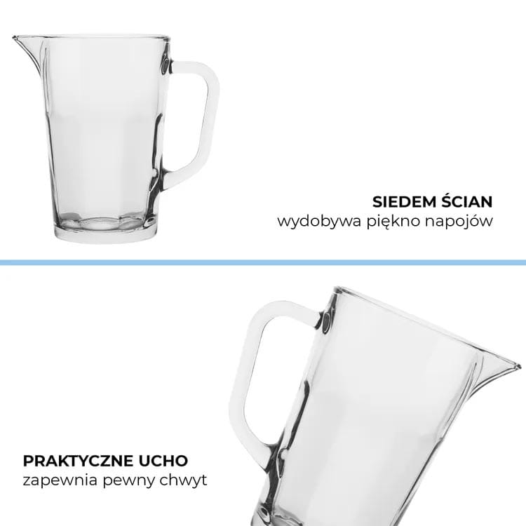 Bardzo solidny szklany dzbanek z rączką do serwowania napojów, wody, soku Trend Glass ALVA 1L