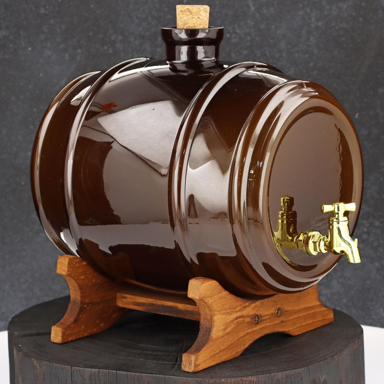 Szklana beczułka, antałek z kranikiem na bimber 4L BRĄZOWA