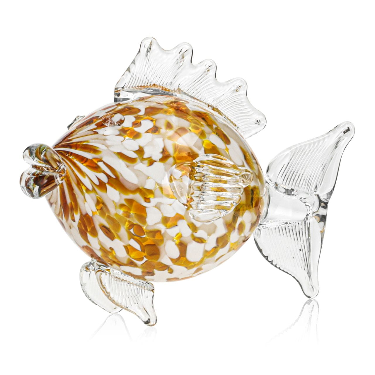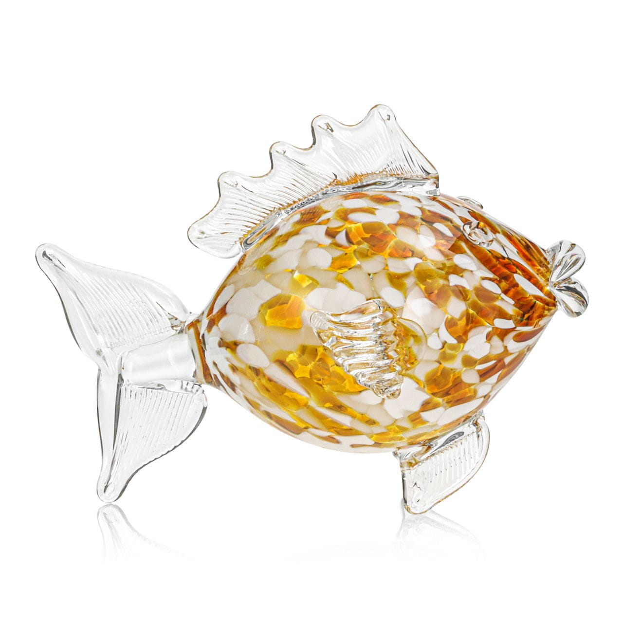 Szklana ozdobna FIGURKA rzeźba ryba PRL 19cm | KULA Biało-Bursztynowa
