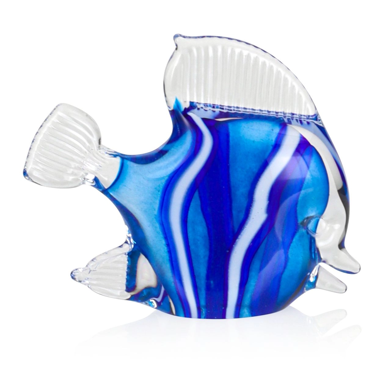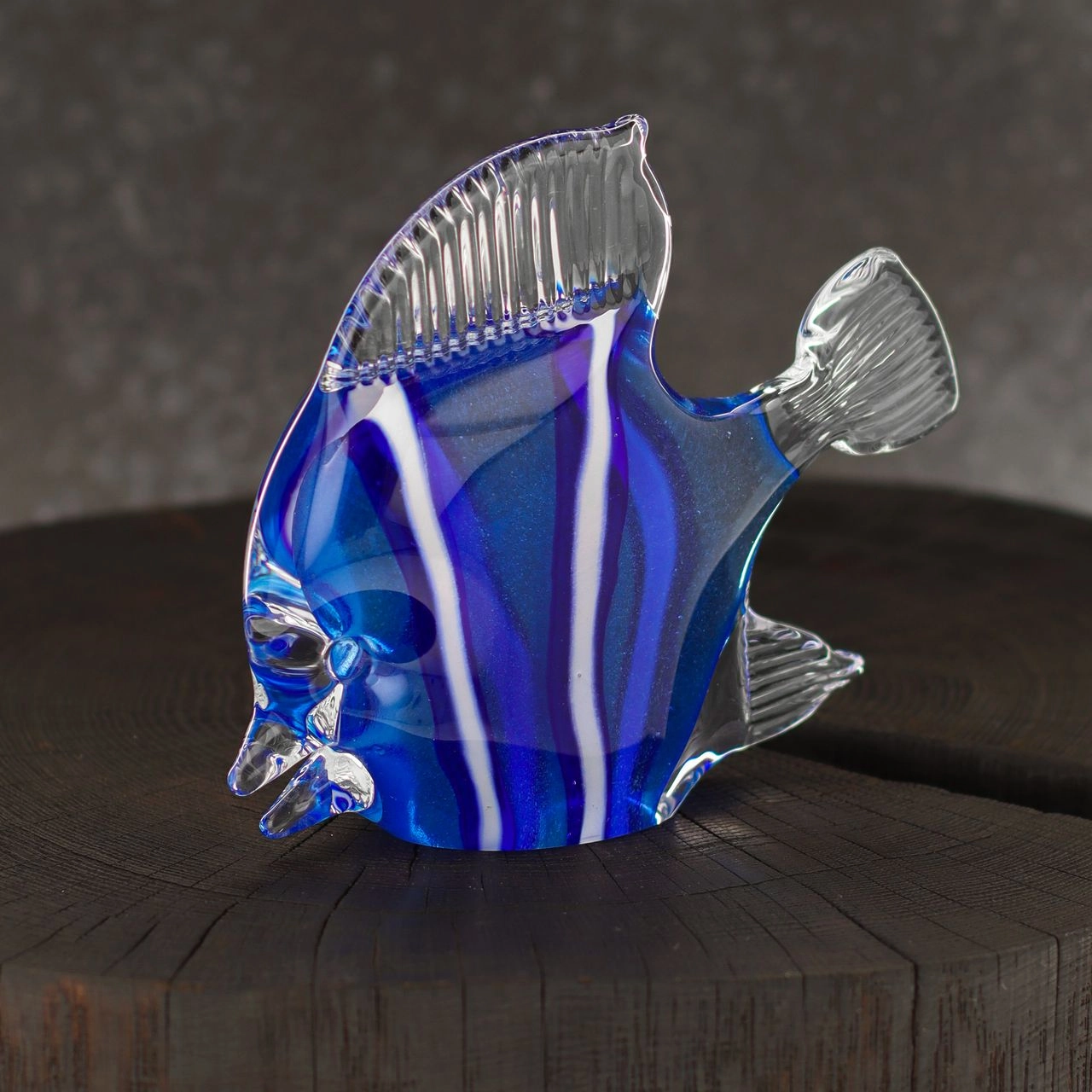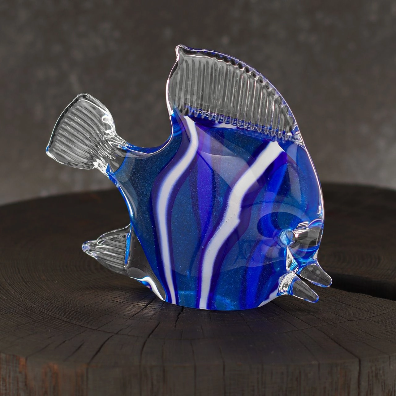 Szklana ryba rzeźba figurka SKALAR 12cm - kolor niebiesko-biały | HUTA SABINA